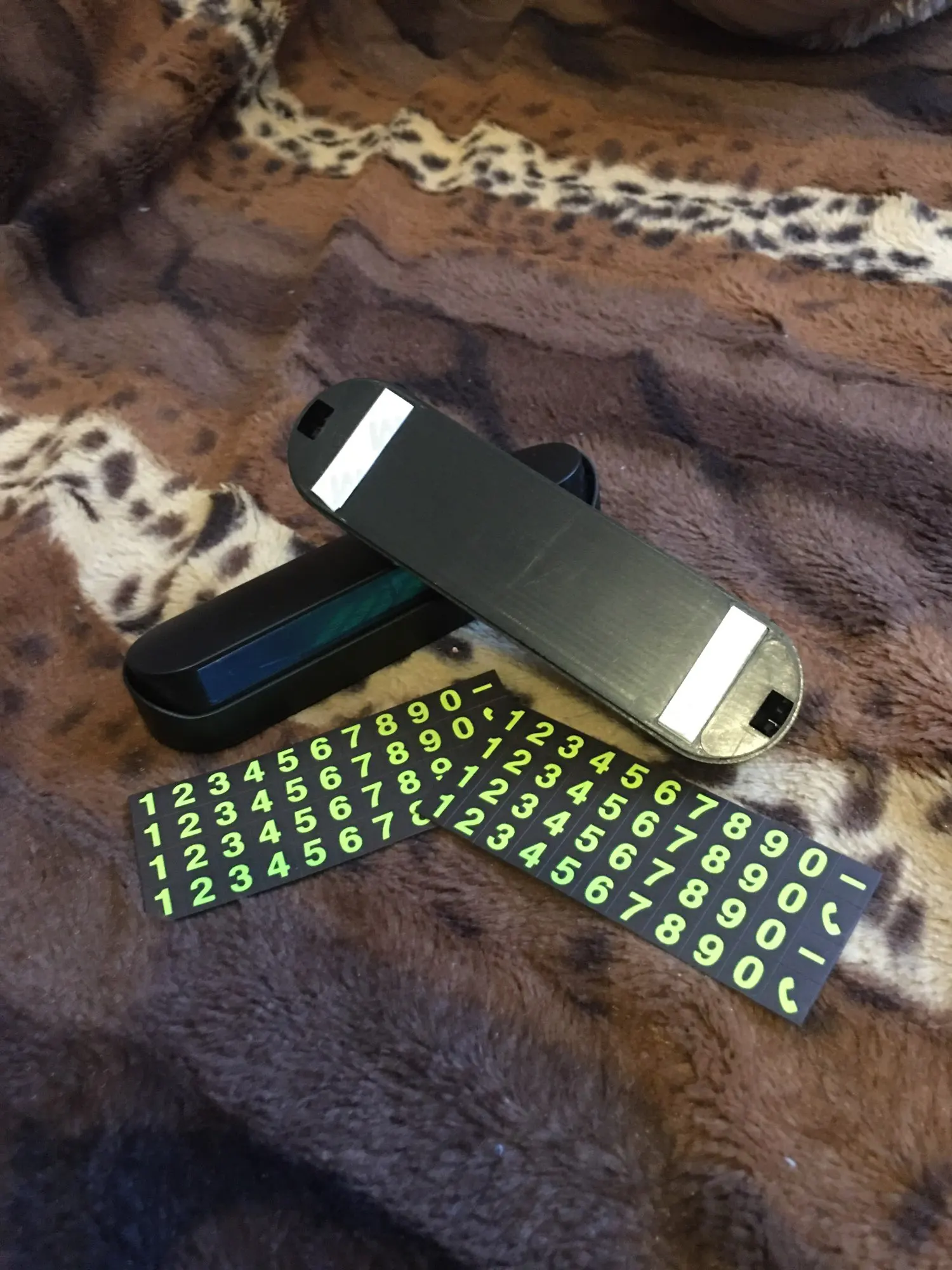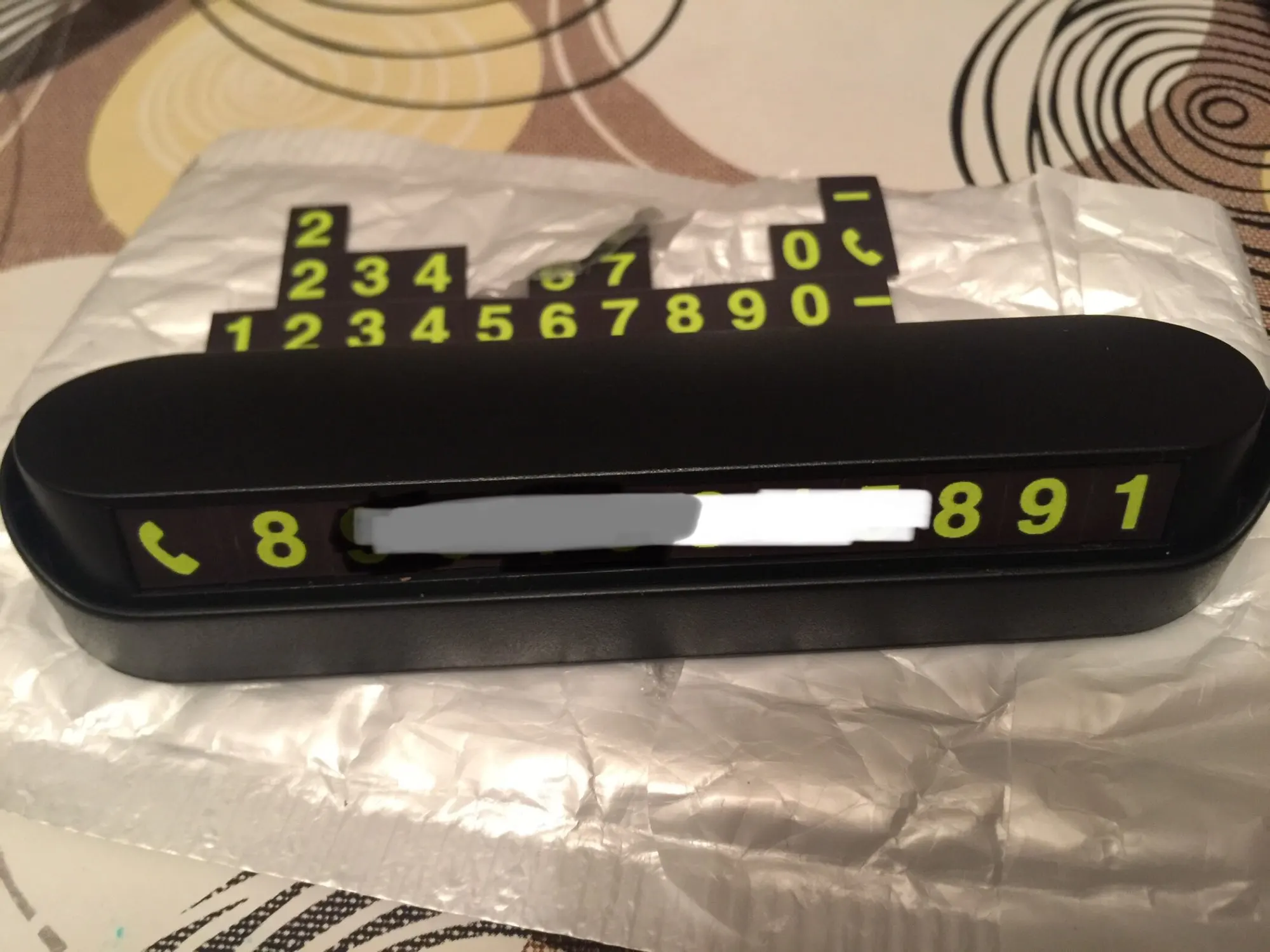 Заказал номер телефона в авто. В комплекте идет пластиковая коробка с клейкой лентой снизу и 4 ряда магнитных цифр.