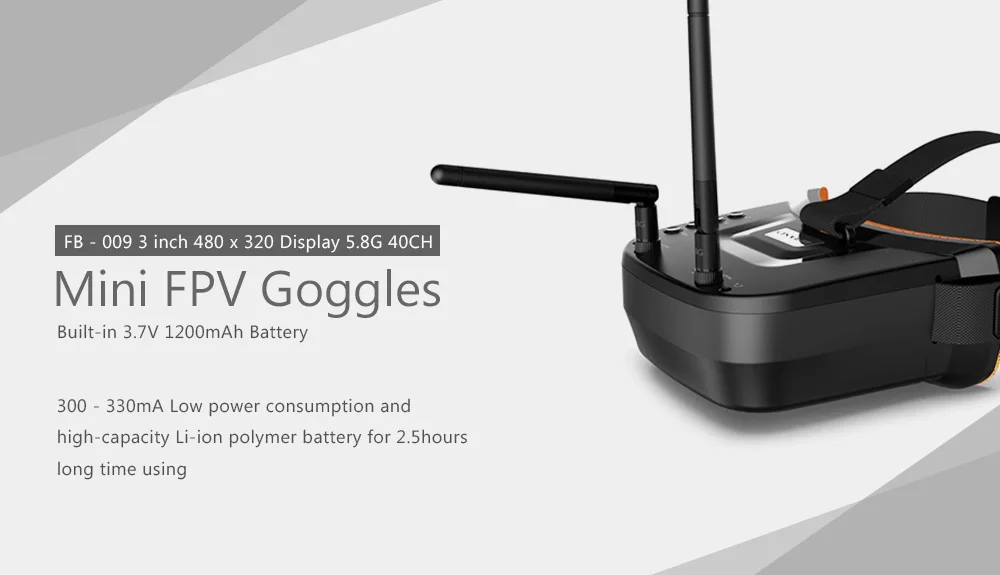 ● Портативный, небольшой размер и светильник вес ● Низкое энергопотребление, рабочий ток: 300 - 330 мА ● Прием двойной антенны, чтобы сделать сигнал более стабильным ● Функция автоматического поиска с одной кнопкой, быстрая и точная ● 3-дюймовый ЖК-экран высокой яркости 480x320 ● Встроенный супер чувствительный приемник 5,8 ГГц 40CH, особенно с RaceBand ● Встроенный литий-ионный полимерный аккумулятор большой емкости 3,7 в, 1200 мАч для длительного использования ● Универсальный USB-интерфейс для зарядки ● Возврат видео в реальном времени с очень низкой задержкой (10 - 20 мс) ● Двуязычное меню, поддержка китайского и английского языков ● Поддержка входа внешнего аудио-видео сигнала ● Поддержка вывода сигнала AV (Подключение внешнего видеорегистратора)