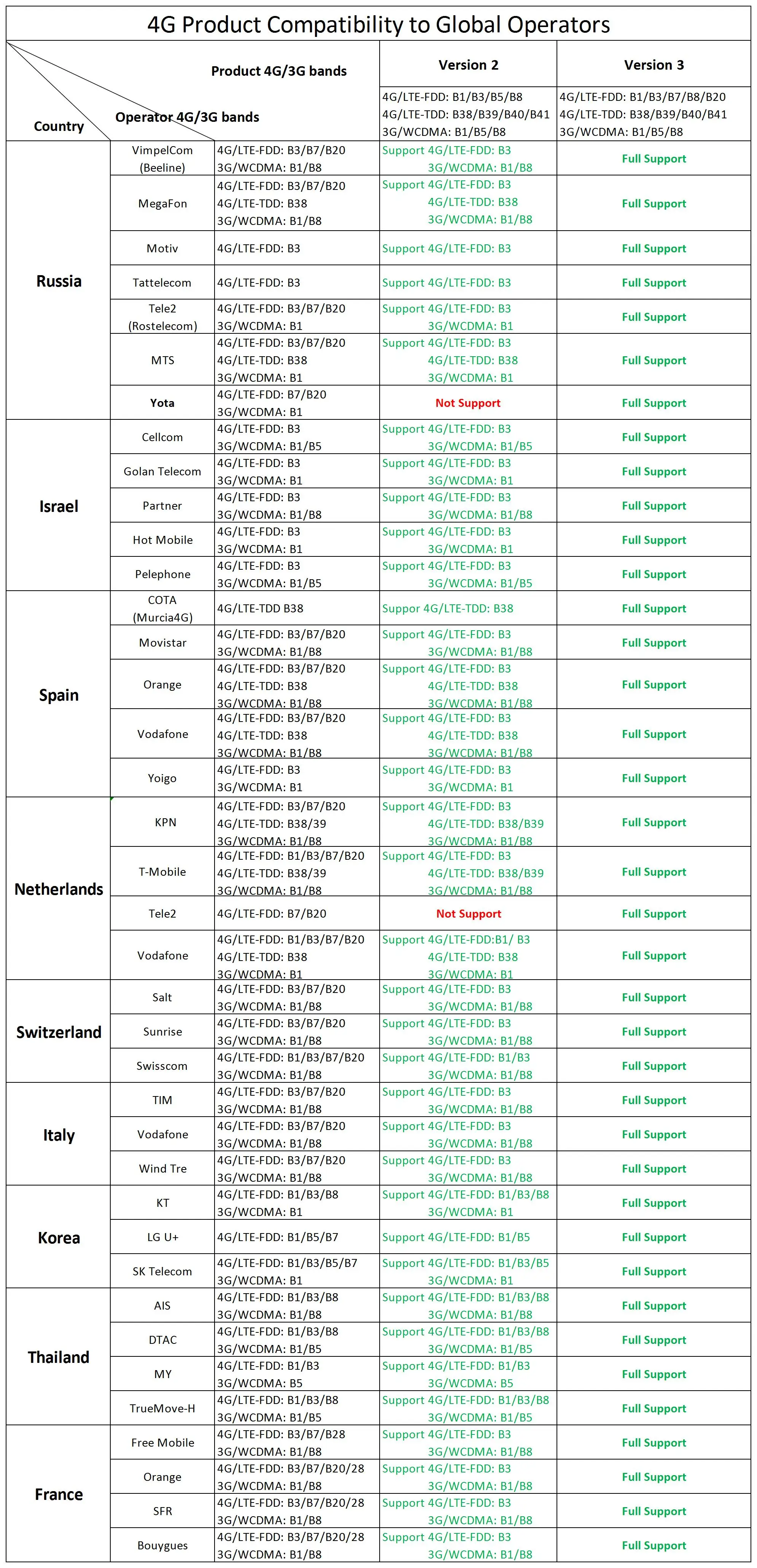 Пожалуйста, проверьте маршрутизатор, работает ли он с вашим оператором или нет, ознакомившись с приведенным ниже чатом. Если вы не в стране,Пожалуйста, позвоните своему оператору, чтобы получить частые полосы, которые он запускает илиПосмотрите на веб-сайт ниже.