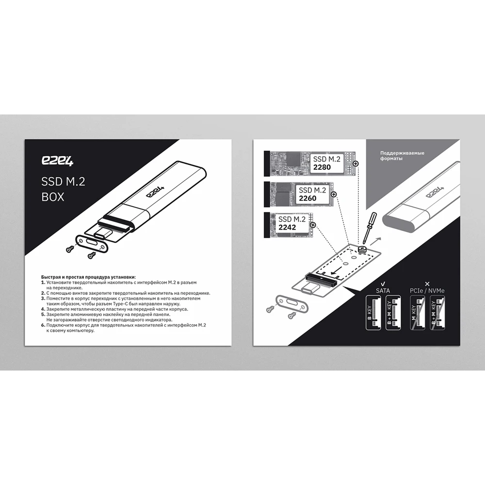 Внешний бокс e2e4 M.2 SATA 224222602280 USB 3.1 Type-C