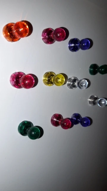 В целом хорошо. Цветовая гамма прикольная, магнит сильный, держит хорошо. Единственно что у самой пластиковой фишки литник обломан неровно и получается что они в этом месте немного щербатые, небрежно в общем. Но если не всматриваться и за эти деньги, вполне норм. Рекомендую!