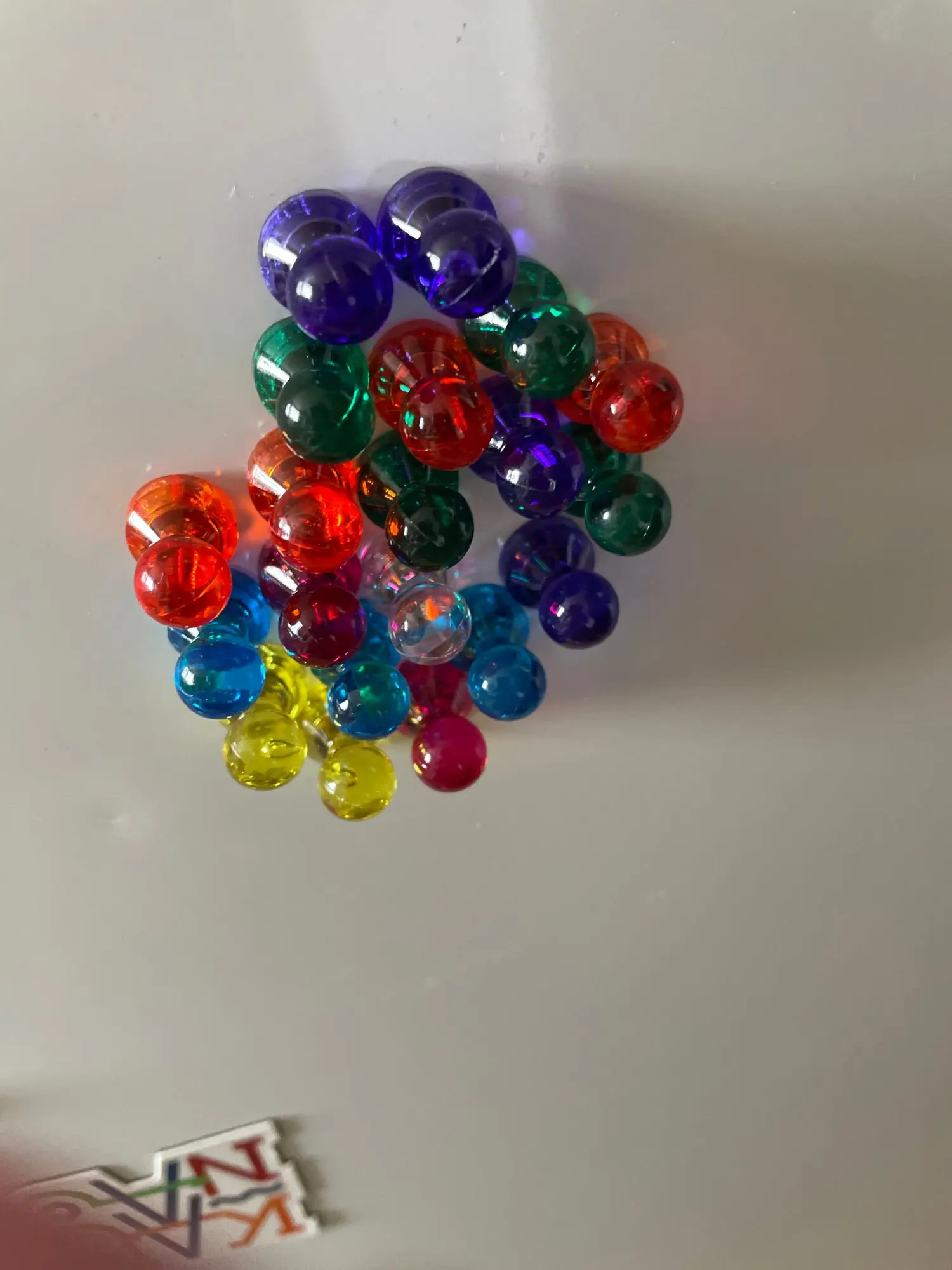 20 симпатичных фишек с неодимовым магнитом. замечаний нет. по 3 разных цветов, кроме одного.