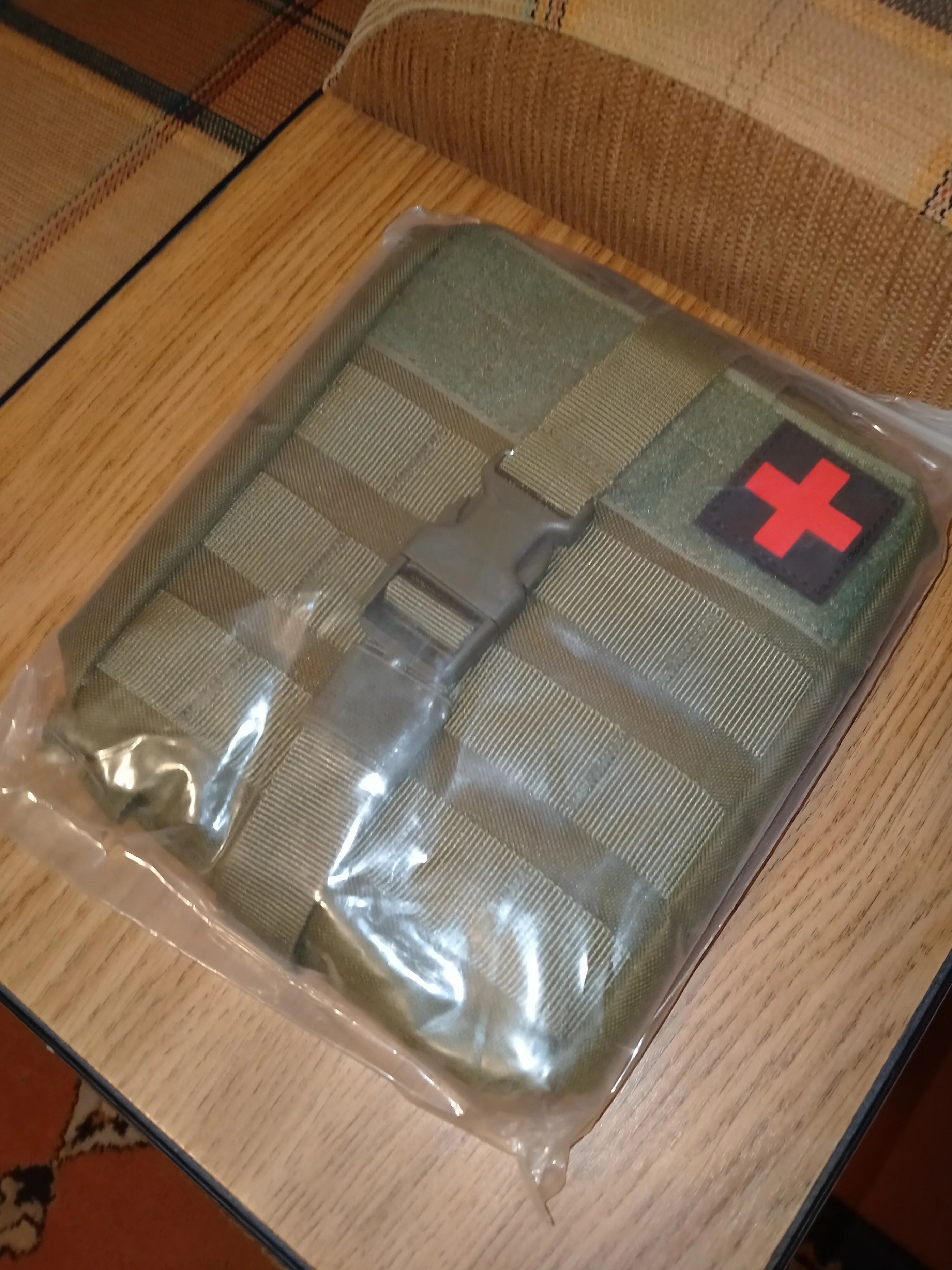 Аптечка дошла, заказывал вместе с нашивкой группы крови, пришли одновременно. Качество отличное, размер оптимальный. Порадовало большое количество возможностей по подвесу. Качественную вещь приятно взять в руки. Товар и продавца рекомендую!