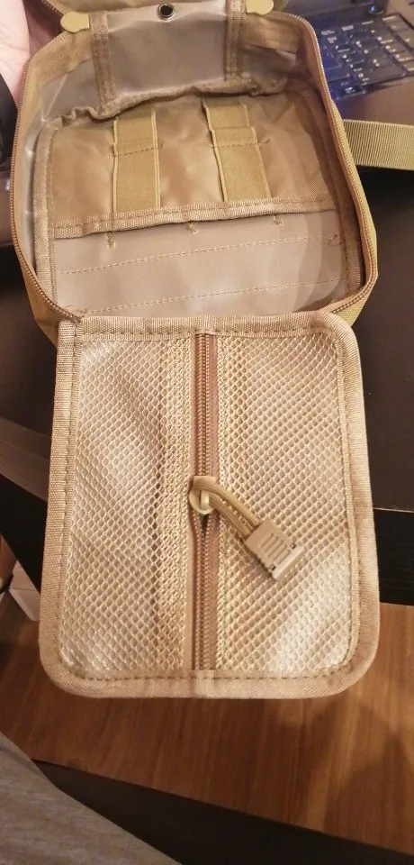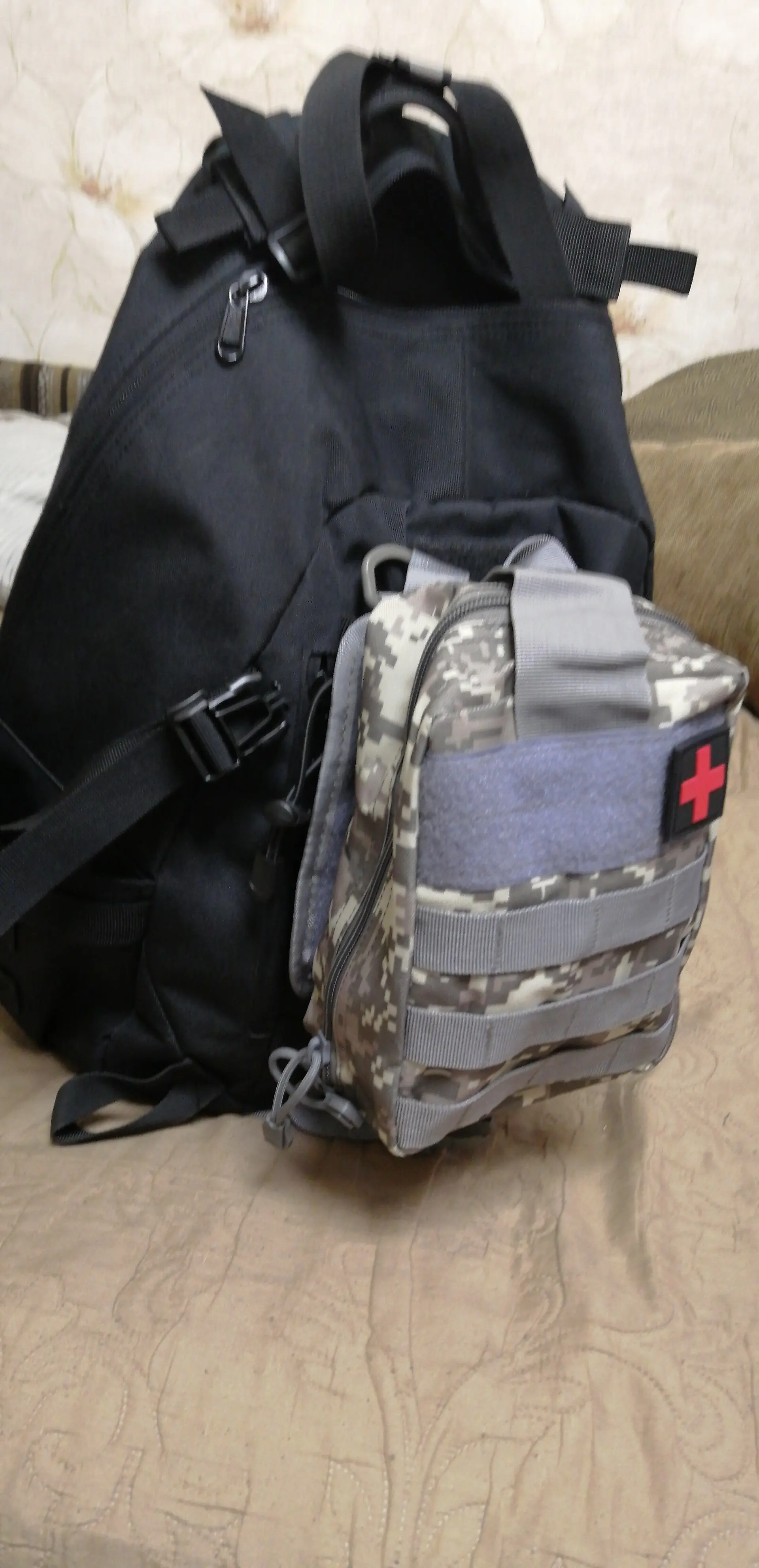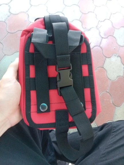 Отличная сумка! Единственный минус - сверху есть не очень удобный широкий ремешок на липучке, который нужно заправлять под липучую основу, если использовать сумку не как аптечку а повседневно, этот ремешок будет мешать, я его просто срежу.