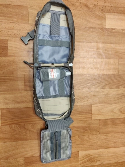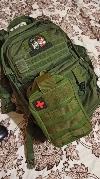 Быстрая доставка, очень хорошая аптечка, хороший материал и кажется водонепроницаемым. Как и я вполне доволен, acoplei в моем рюкзаке камуфляжной расцветки в том же цвете и сверху.