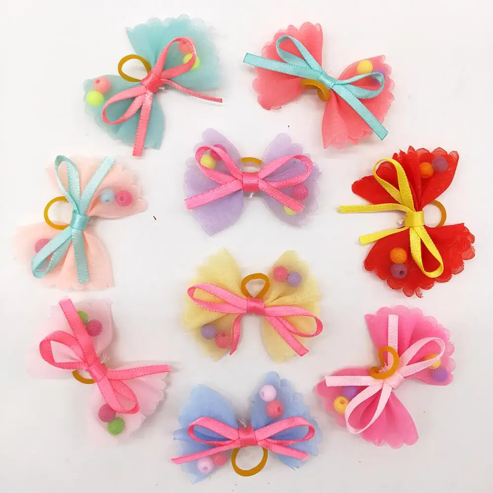 KA0010 10 шт. смешанный волос Луки из резинок, ярких цветов; Модная Милая Собака Щенок Кот котенок кошка игрушка для домашнего животного для детей с галстуком-бабочкой; Украшение