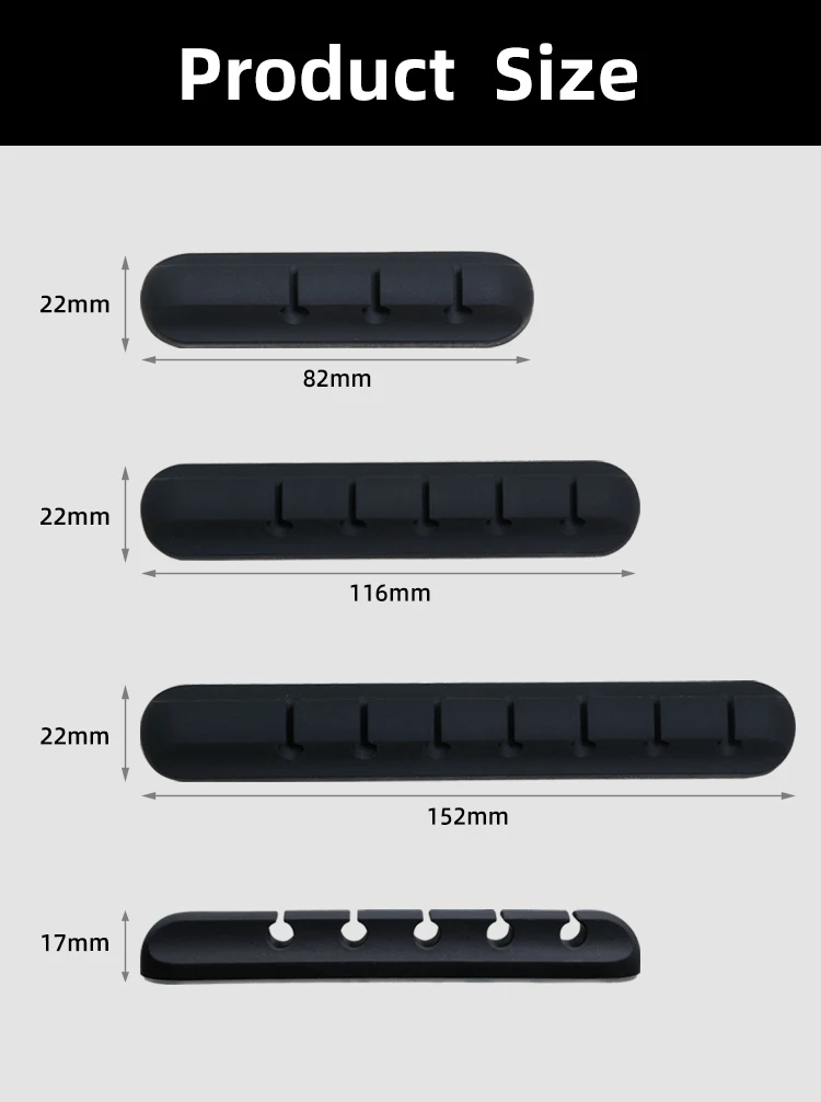 Фирменное наименование: chaure Форма: настольная намотка кабеля Материал: силикон Размер: зависит от того, что вы выбираете Посылка: нет Блок Тип: деталь Размеры: 3 зажима: 82 мм * 22 мм * 17 мм 5 зажимов: 116 мм * 22 мм * 17 мм 7 зажимов: 152 мм * 22 мм * 17 мм Вес: 21 г/31 г/35 г Характеристики: органайзер для наушников/Органайзер для провода/Органайзер для зарядного устройства/Органайзер для кабеля/держатель для наушников/держатель для зарядного устройства/Органайзер для кабеля