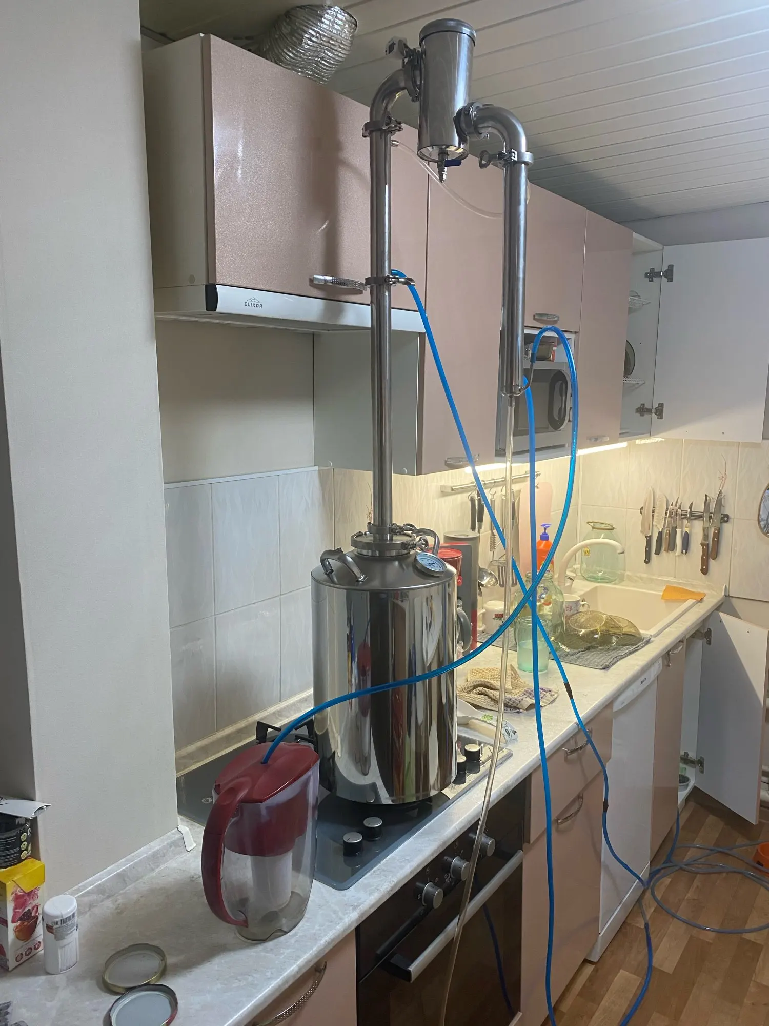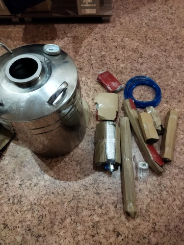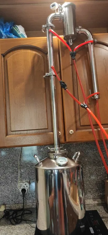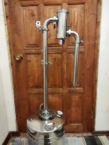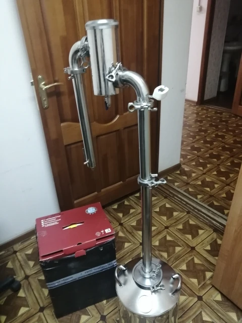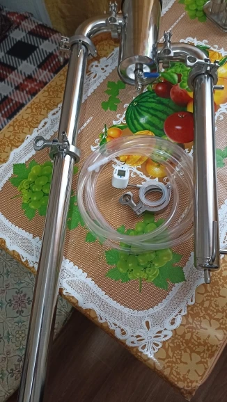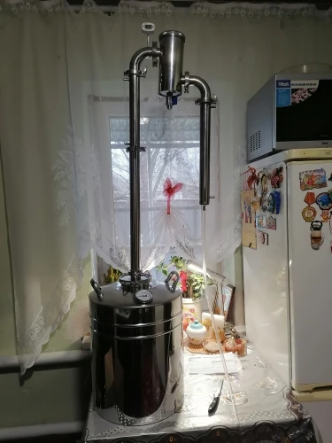 Погонял аппарат во всех режимах, могу теперь оставить отзыв. Аппарат собран отлично, все проварено ни где не течет, все стыкуется супер, индукционное дно 4 мм проверить не успел. Обязательно нужен игольчатый кран на подачу в дефлегматор, он очень мощный. при сильном напоре аппарат будет работать все время на себя. В комплекте шланг пвх 3 или 4 метра. Царга пустая, нужен наполнитель. холодос и деф на 6 трубок. при медленном отборе гонит 96.6. Надо прикупить для работы: наполнитель в царгу, игольчатый кран 10 мм, 2 тройника на 8 мм, силиконовый шланг на слив с холодильника, и прокладку в джин корзину, пвх шланг Теперь о недостатках: 1 края куба острые надо обработать 2 куб пришел мятый 3 термометр в кубе механический не исправен 4 в джин корзине прокладка РЕЗИНА 5 джин корзина на резьбе а не на клампе кроме пункта 3 о недостатках знал. Взял с промокодом, по поводу недостатков открыл спор. Считаю лучший аппарат за эти деньги! с продавцом не общался, пришло довольно быстро. Рекомендасьён!