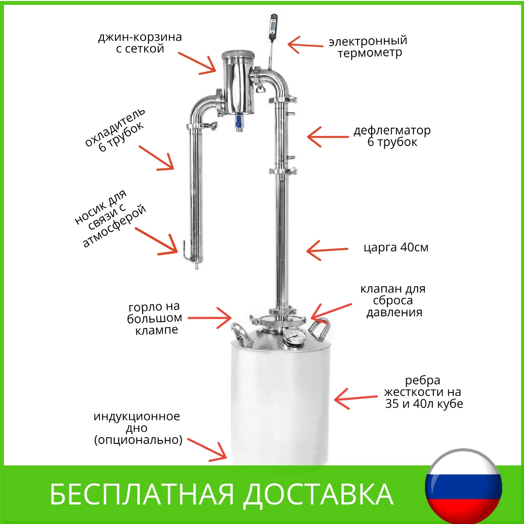 Самогонный аппарат Лидер с Джин-корзиной и царгой, дистиллятор бытовой, 16 26 25 35 40 литров