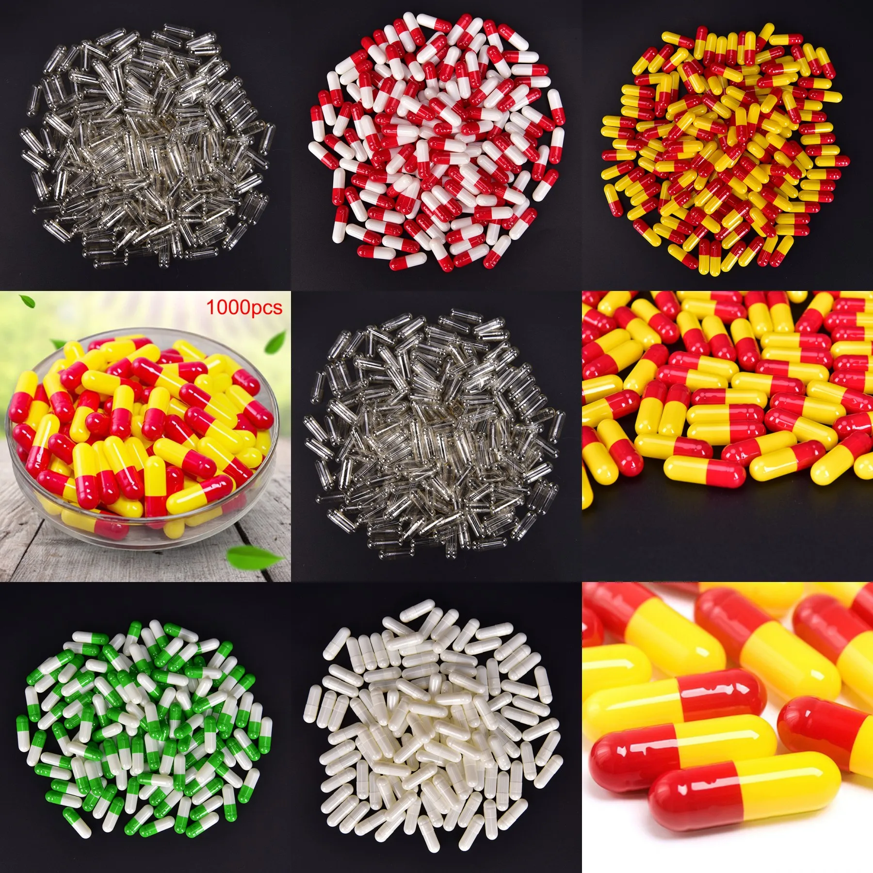 1000 шт., разноцветные пустые капсулы, разделенная коробка для таблеток, тонкая коробка для таблеток, бутылка в форме капсулы, умная коробка для таблеток