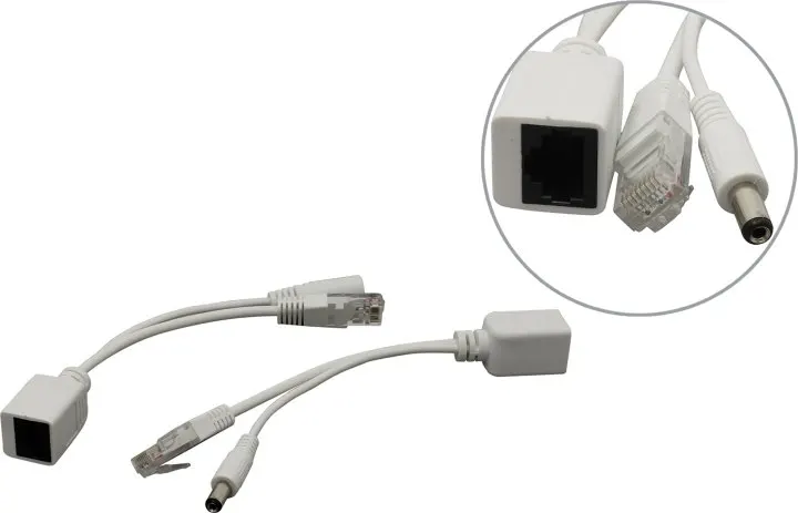 Вход- RJ45 (PoE), выход - RJ45 (10/100 Base-T)/штекер DC 2.1*5.5мм