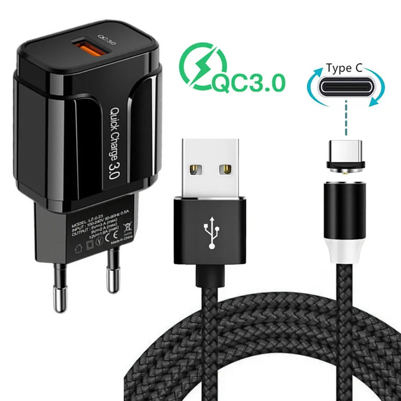 Быстрое зарядное устройство QC 3,0 usb с магнитным кабелем типа C д...