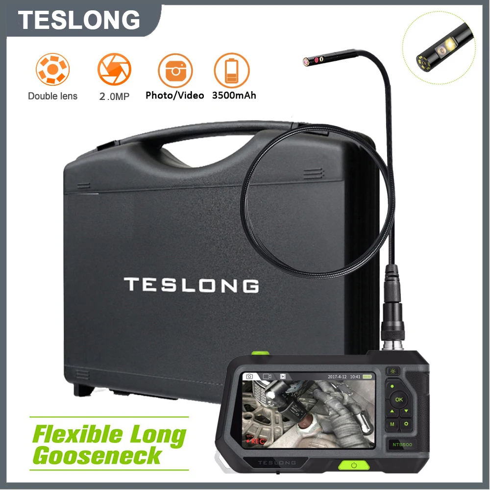 TESLONG 5,0 дюймовый ЖК-дисплей промышленная камера-эндоскоп Snake Tube 1080P двойной объектив Автофокус Автомобильная трубка цифровой бороскоп для осмотра