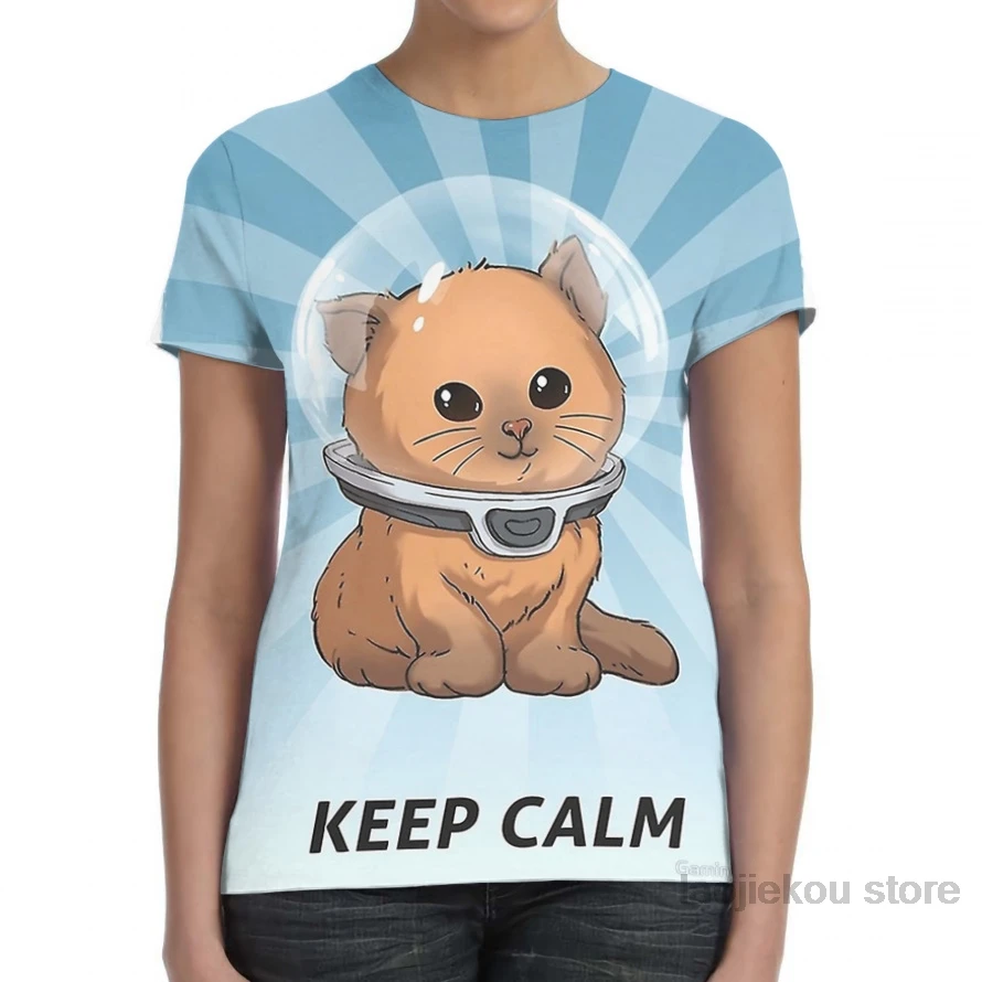 Футболка Subnautica с надписью Keep Calm Kitty для мужчин и женщин, модная футболка со сплошным принтом для девочек, топы для мальчиков, футболки, летние футболки с коротким рукавом