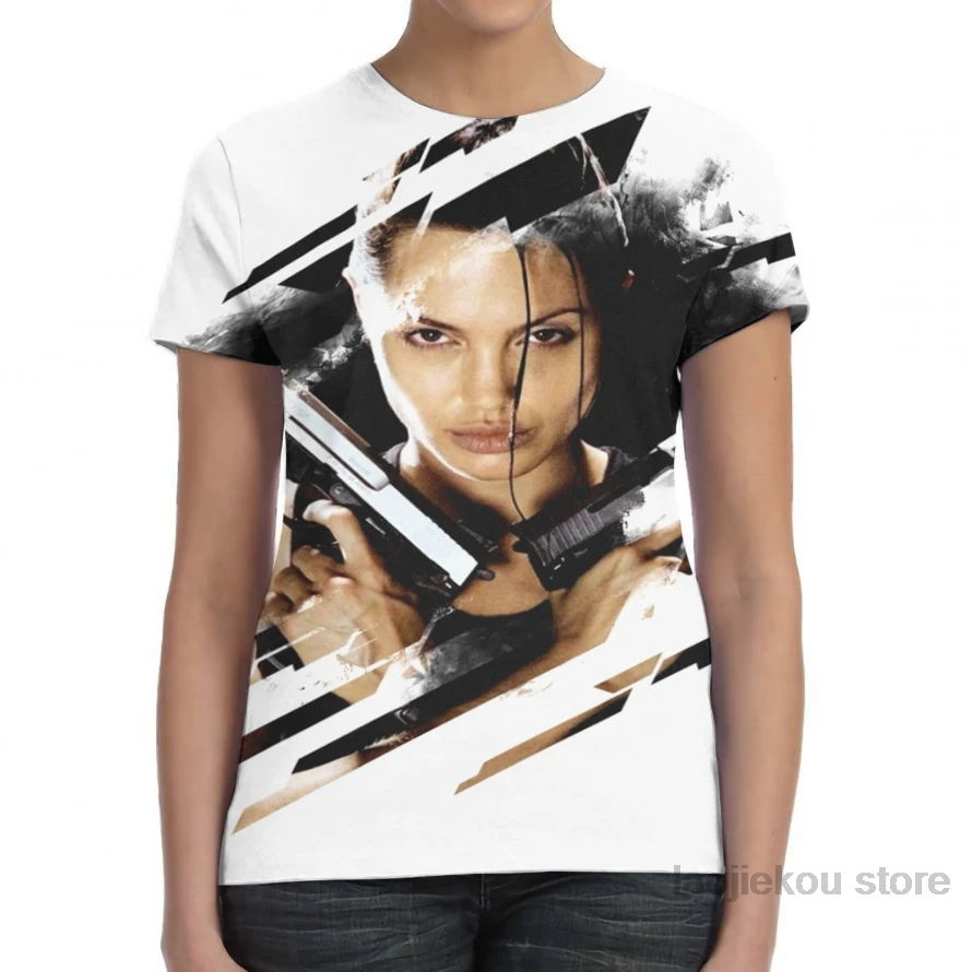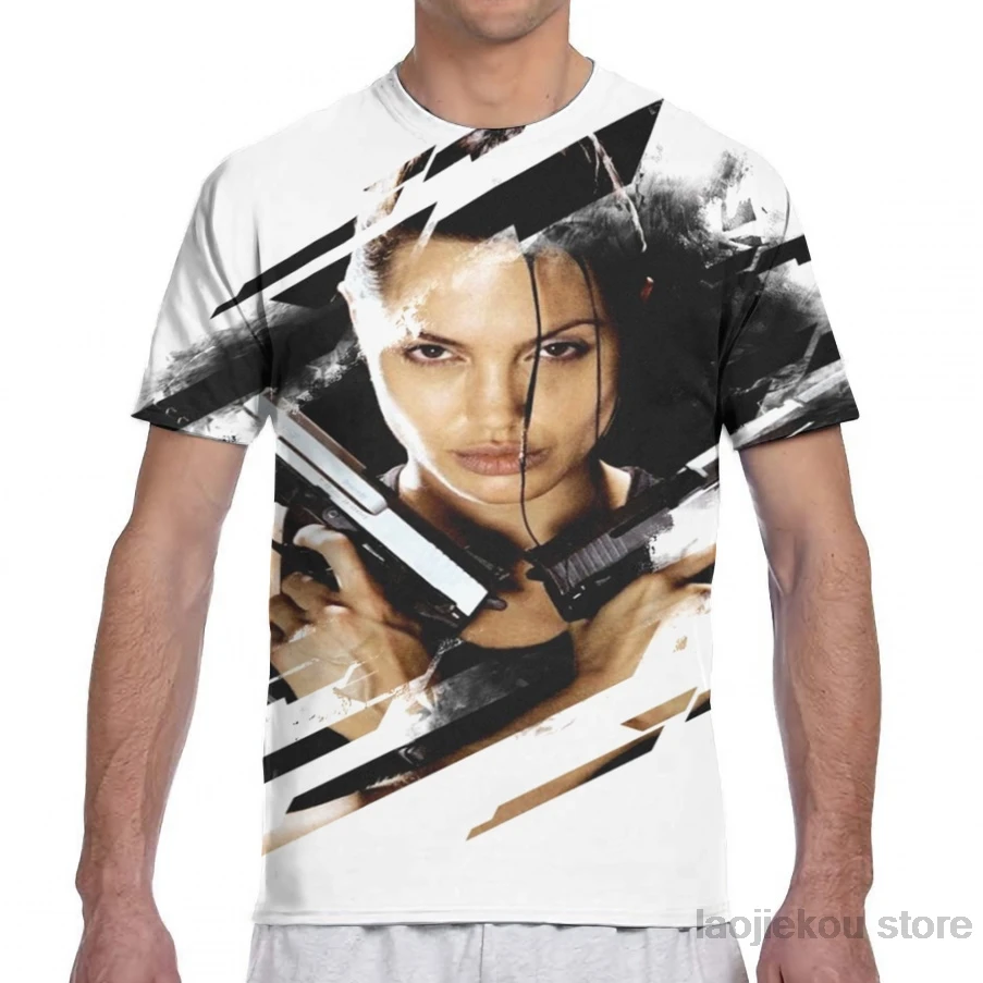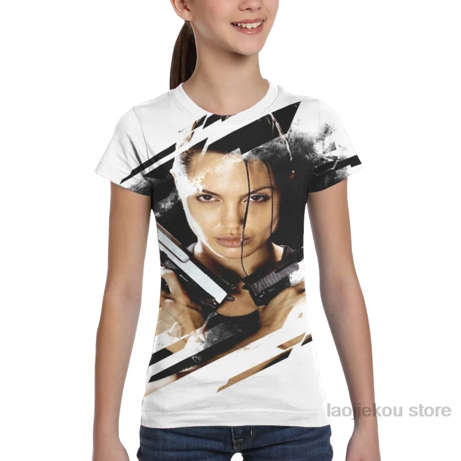 Мужская и женская футболка с принтом Лара Крофт-Гробница-Анжелина Джоли, модная футболка для девочек, топы для мальчиков, летние футболки