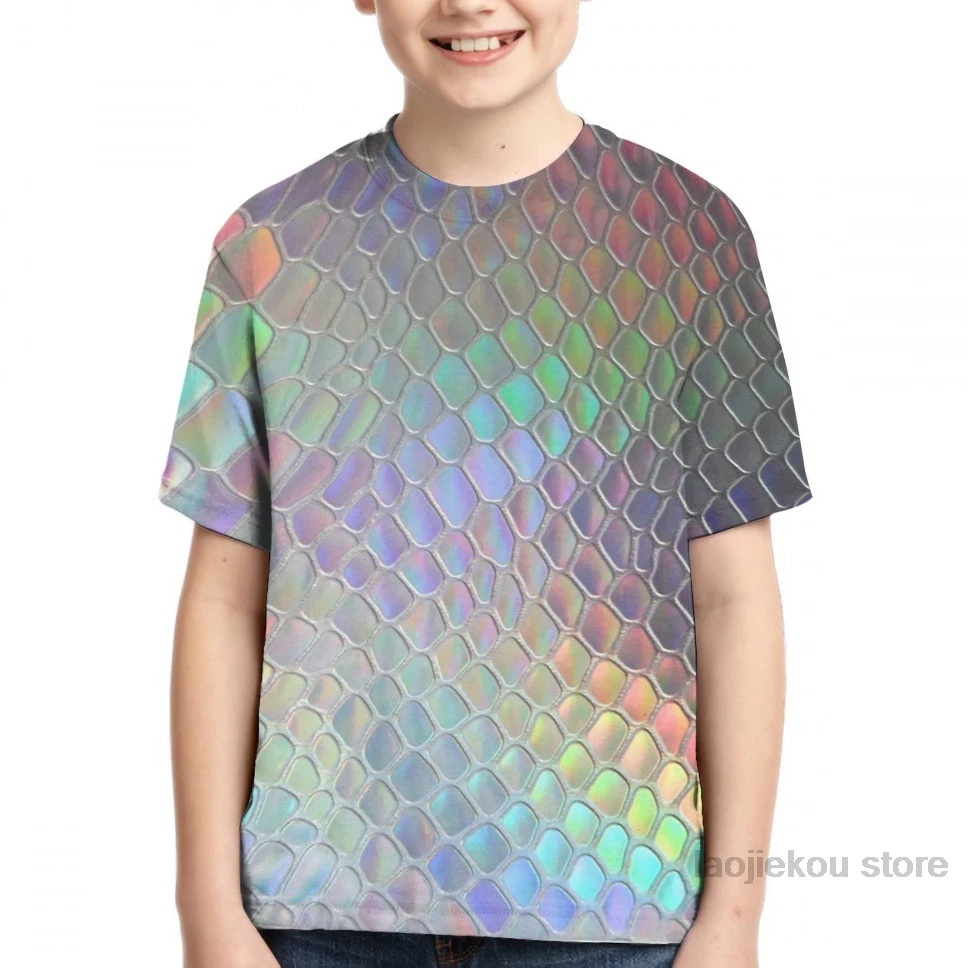 Футболка с голографическим кроком для мужчин и женщин, модная тенниска со сплошным принтом для мальчиков и девочек, топы, рубашки с коротким рукавом, на лето