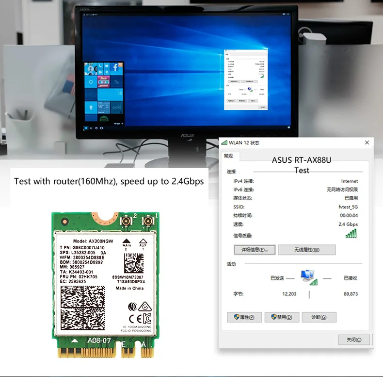 Wi-Fi 6 Двухдиапазонная беспроводная карта 3000Mbps для Intel AX200 M.2 Bluetooth 5,0 2,4G5 ГГц 802.11acax AX200NGW Wi-Fi адаптер Антенна