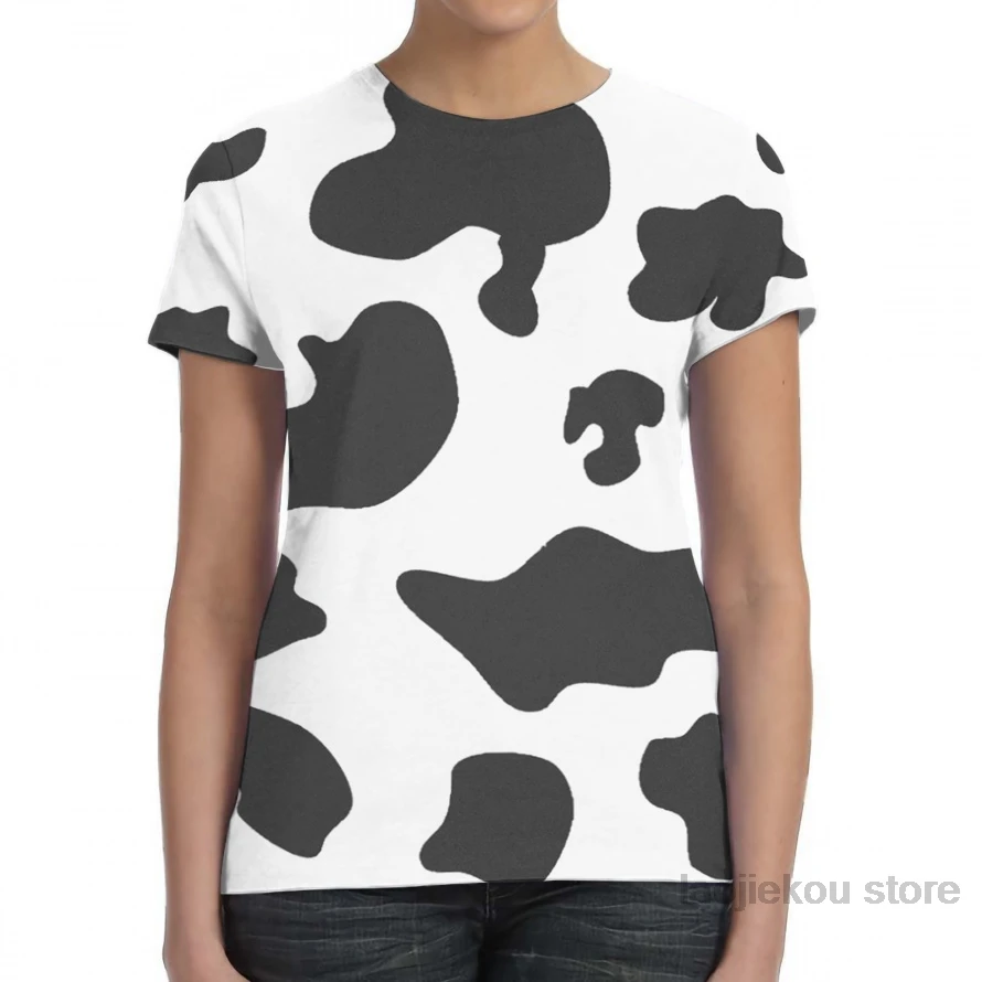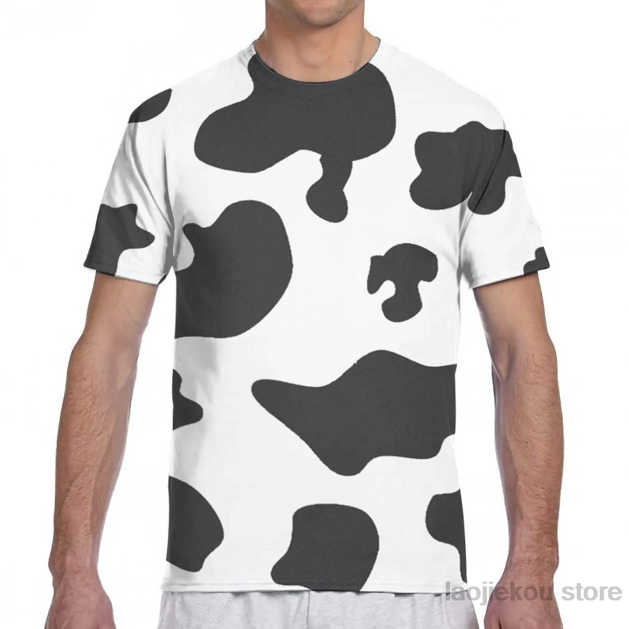 Футболка Мужскаяженская с коротким рукавом, модная тенниска со сплошным принтом в виде коровы и пятен, майка для мальчиков и девочек, лето