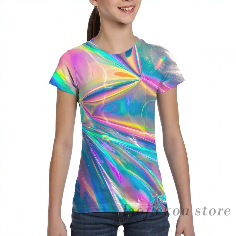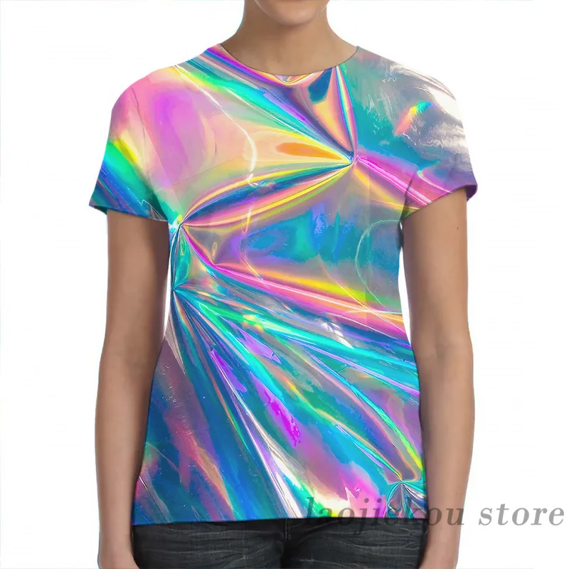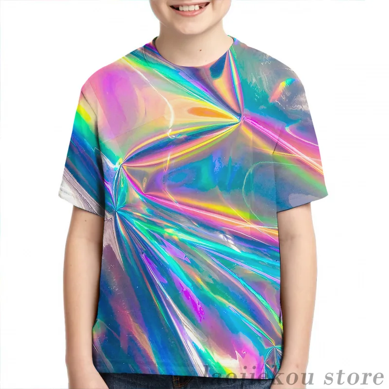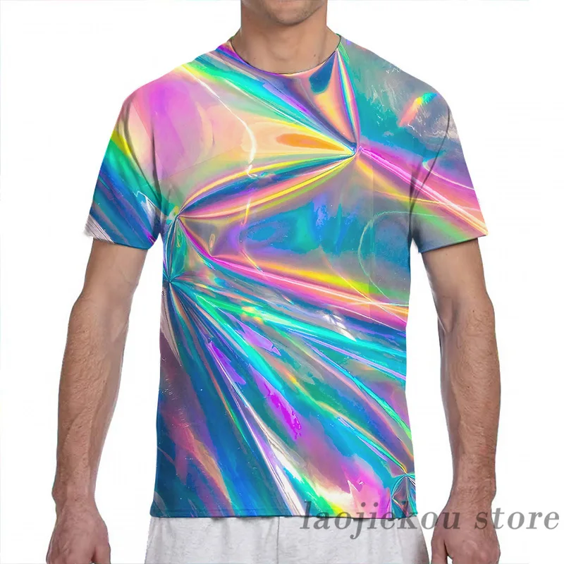 Футболка с голографическим принтом для мужчин и женщин, модный топ с коротким рукавом для мальчиков и девочек