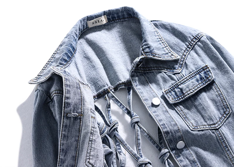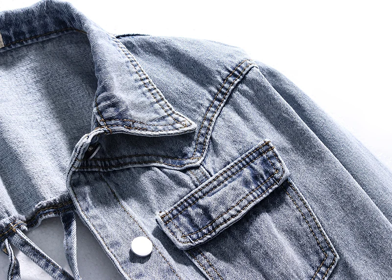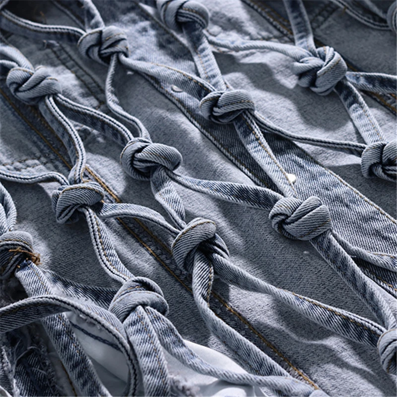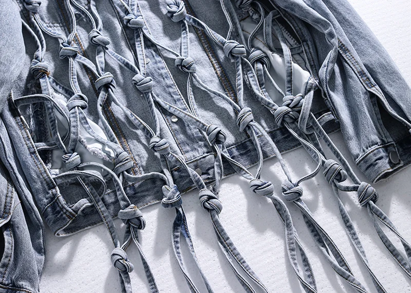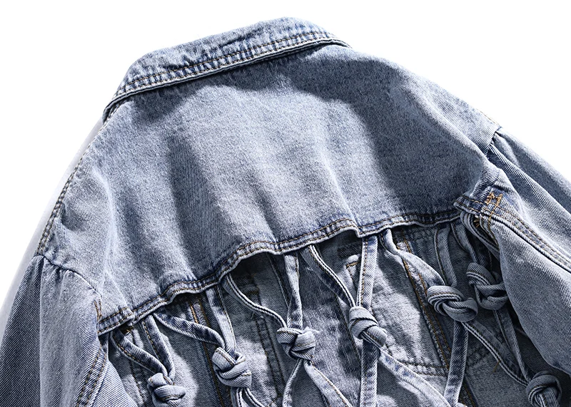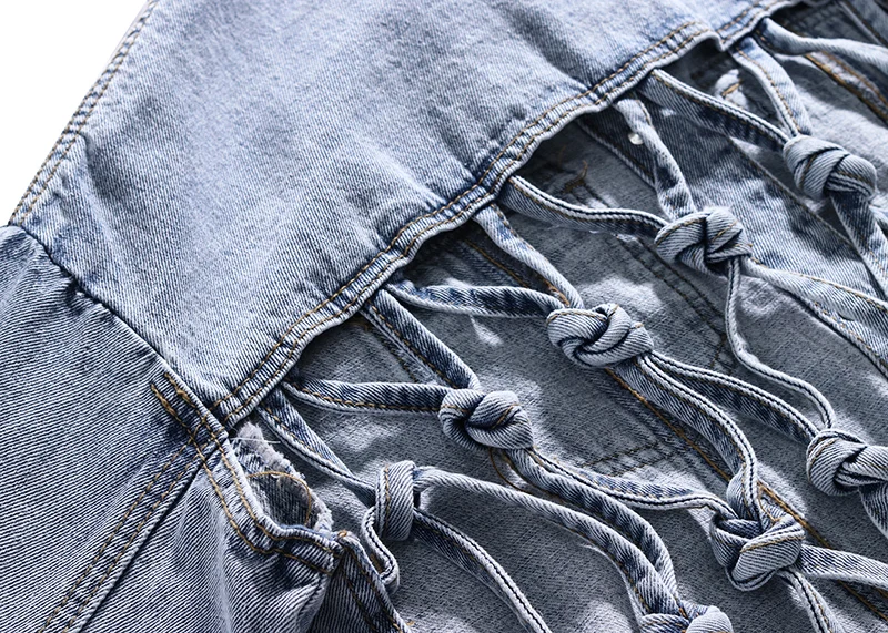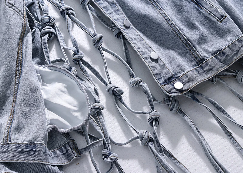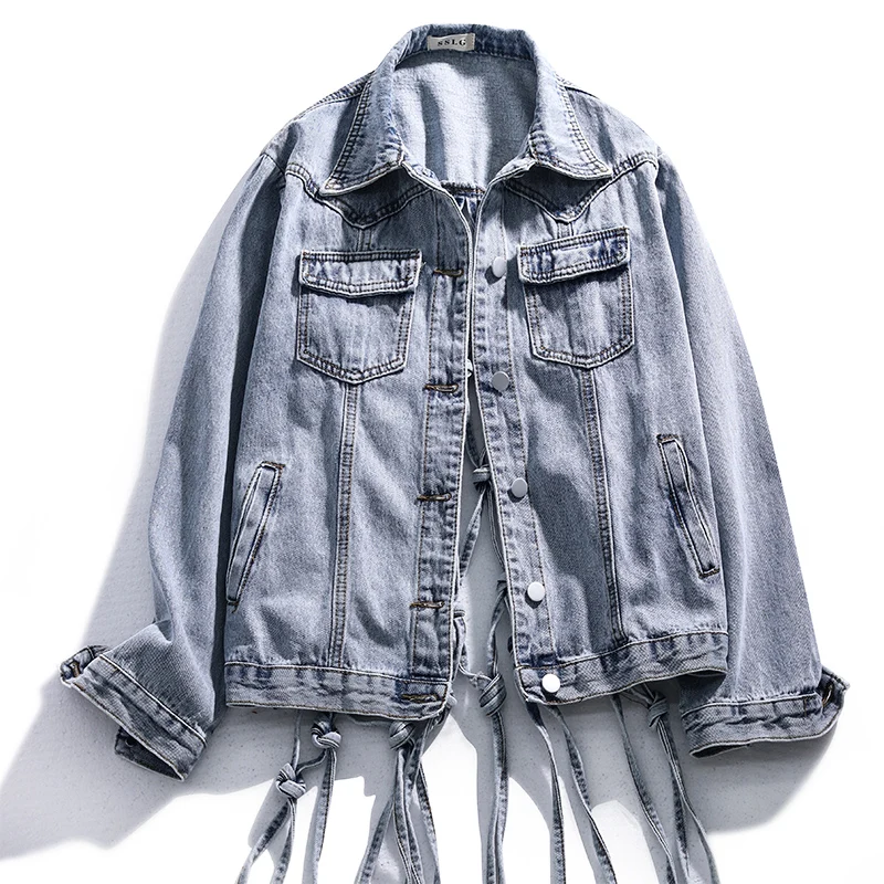 Женская джинсовая куртка с открытой спиной, красная свободная повседневная куртка из джинсовой ткани с ажурной сеткой и бахромой, 013, весна-лето 2020