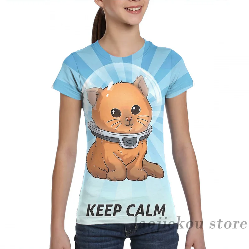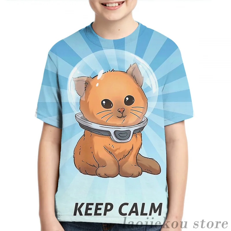 Мужская футболка Subnautica с надписью Keep Calm Kitty, женская модная футболка с принтом по всей длине для девочек, топы для мальчиков, футболки с коротким рукавом