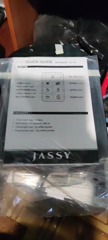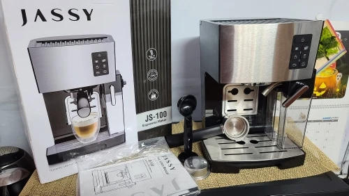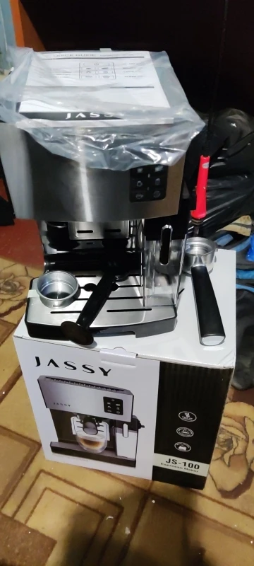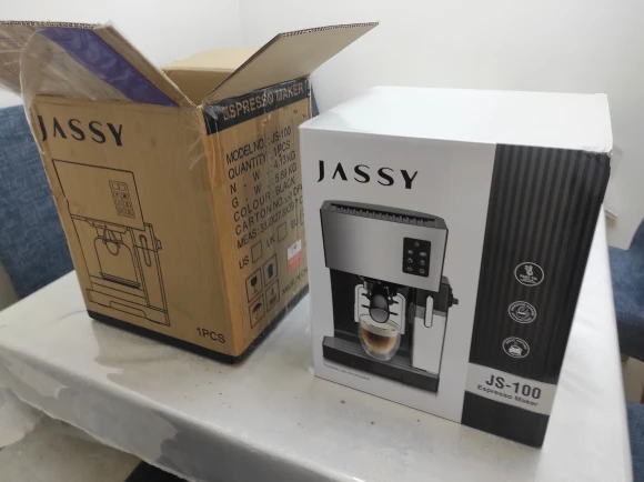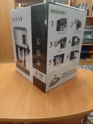 Товар пришел вовремя, получал в Пятерке. Упаковано качественно, коробка двойная (коробка в коробке). Машинка делает свое дело - варит кофе. Jassy JS-100 - это по факту модель Kitfort КТ-743, даже в бумажной инструкции в конце указано мыло китфорта. Есть ли в ней 19 бар - не знаю. Вторая машинка в семье - Gaggia Viva De Luxe. У нее после приготовления кофе в рожке остается почти сухая жесткая таблетка. У "Джессики", как мы ее называем, таблетка гораздо более мокрая и рыхлая (при одинаковой темперовке). И кофейная пенка у Gaggia (без всякого молока) получается более пышная, чем у "Джессики" на одном и том же сорте и помоле кофе. Капучинатор удобный, можно снять стакан и одеть длинную трубку, которую опускать сразу в пакет молока (сливок). Есть настройка длительности пролива воды, чтобы получать больший объем в чашку. Но описание этой настройки есть, например, в английской части инструкции, но нету в русской.