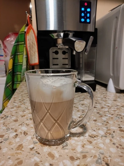 Это идеально, и кофе очень вкусный, такой же опыт, как в кофейне. Его легко использовать и чистить, кофе не становится слишком горячим, и он находится при идеальной температуре питья. Доставлено хорошо упаковано, без дефектов, Доставка занимает больше времени, чем ожидалось из-за длительных праздников и таможни. Спасибо!