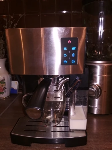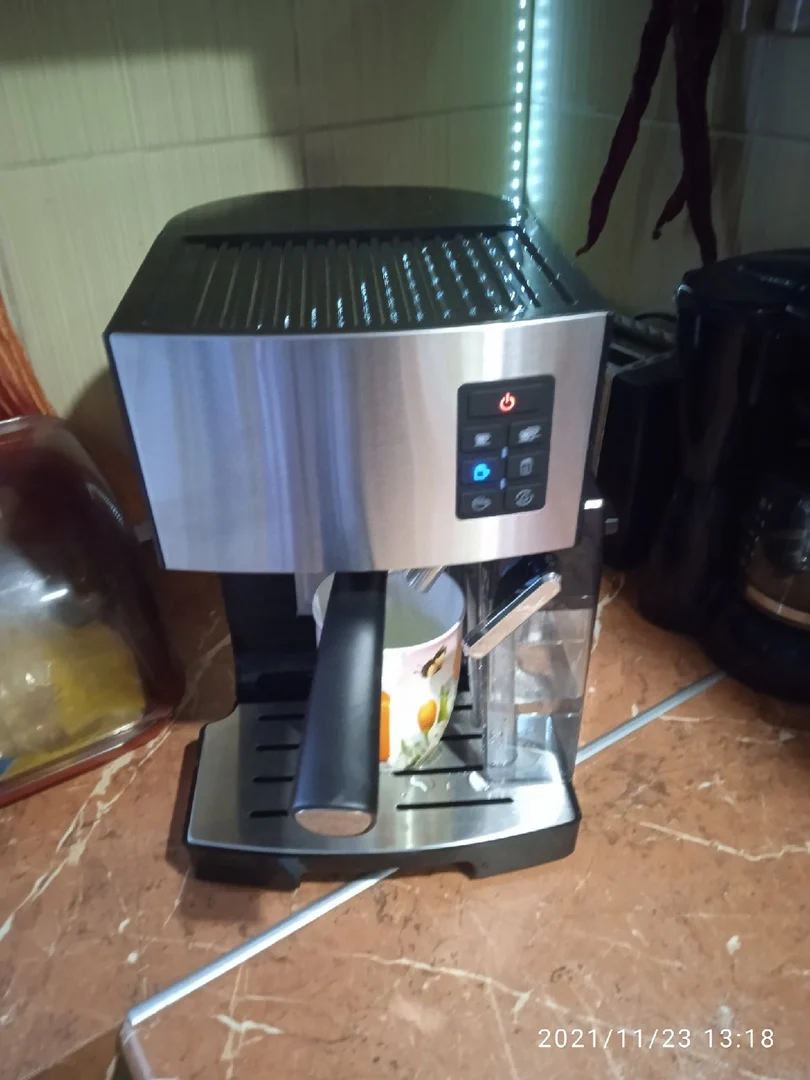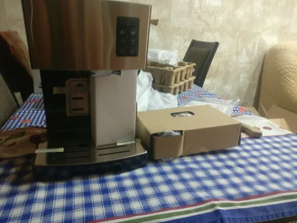 Товаром доволен, кофе и пенку готовит хорошо, все довольно просто, это мой первый опыт пользования кофемашиной. Инструкция с очень хорошим переводом на русский язык. При первом включении надо после заливки воды нажать на одну из кнопок приготовления кофе, чтобы насос закочал воду. Нагревается быстро. Упакована надёжно, вандалы на пересылке хоть и старались, к счастью две коробки все выдержали! Продавец долго отправлял, в целом доставка заняла 65 дней. Качеством доволен, к покупке советую, производителю спасибо за хороший товар.