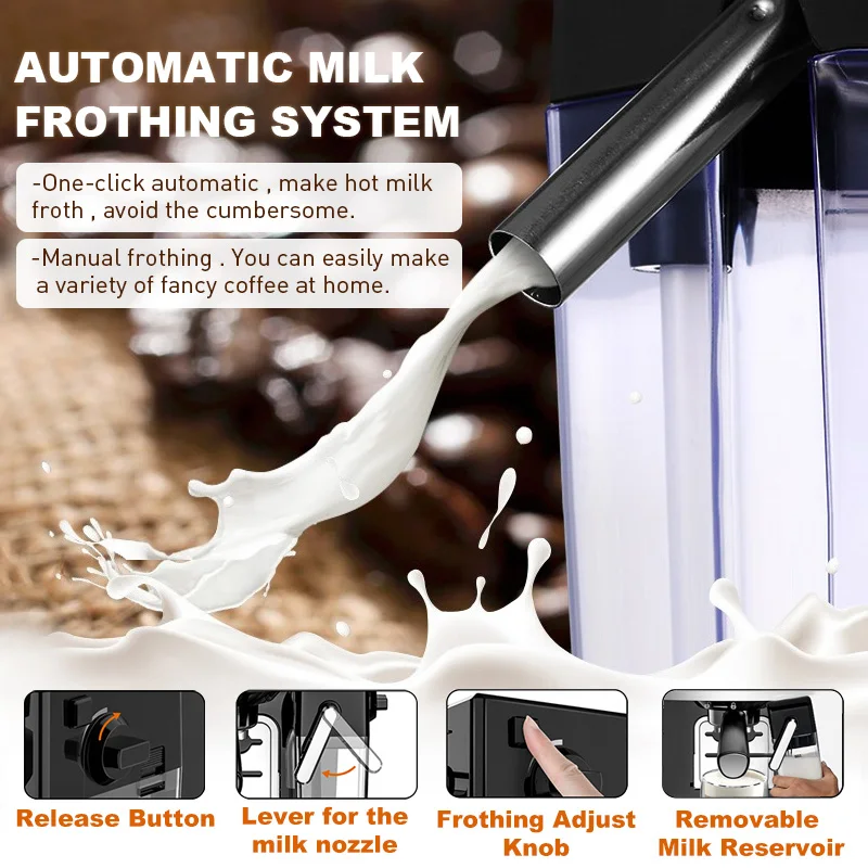 Автоматическая кофемашина JASSY для эспрессо, 19 бар, кофеварка для капучино и латте, универсальная машина для эспрессо с молочным пенообразователем