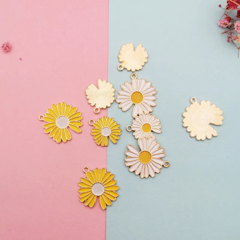 10 шт., подвески в виде маргариток, эмаль, капли масла, хризантема, цветы, металлические подвески для женщин, ювелирные изделия, сделай сам, браслет, серьги, аксессуары
