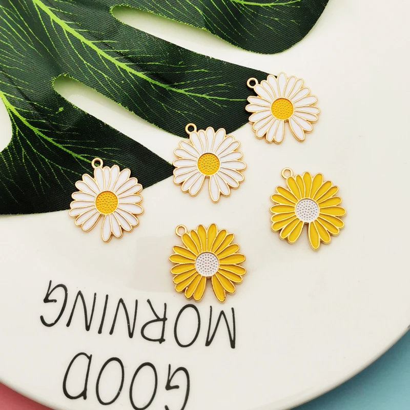 10 шт. эмалированные подвески с маргариткой, масляные капли, цветы хризантемы, металлические подвески для женщин, ювелирные изделия, DIY браслет, серьги, аксессуары