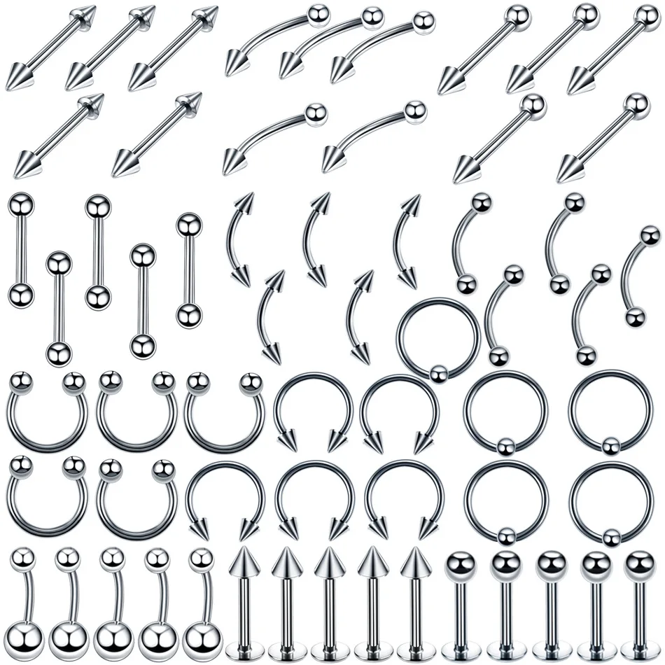 [Наименование]: Набор для прокола из нержавеющей стали, 60 установленных языка губная серьга-гвоздик, кольцо для бровей, носа, пупка, кольцо для соска, кольца для прокола, орнамент
