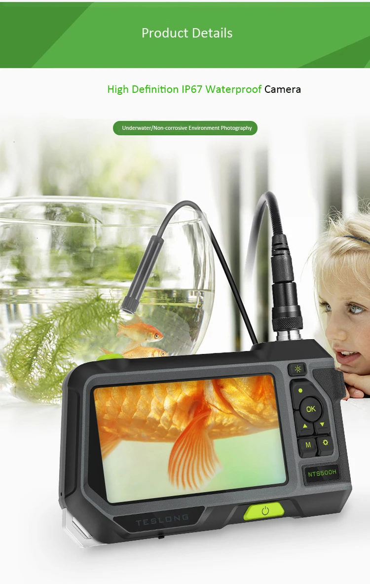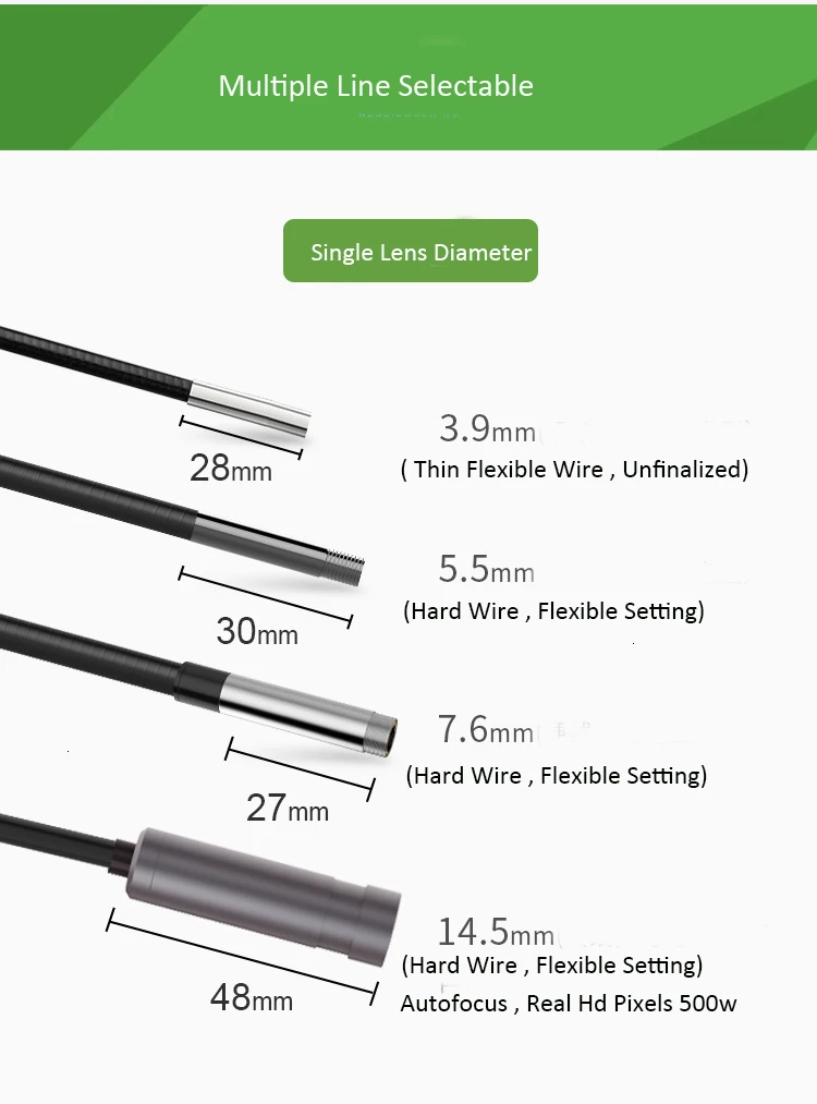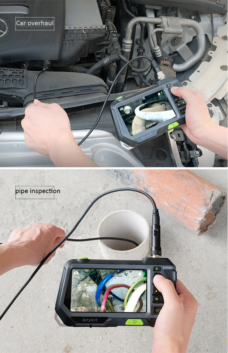 Монитор: Тип экрана: 2,8-дюймовый цветной экран Разрешение: 1920*1080 пикселей (QVGA) Вращение: 360 ° Разрешение камеры: 1920*1080 Разрешение фото: 1920*1080 Разрешение записи: 1280*720 1920*1080 Язык: английский. Китайский, немецкий, французский, испанский, итальянский, русский, японский Порт: Порт удаленного подключения, USB, слот для карты TF SD-карта 32G TF Камера: Диаметр: 7,6 мм/5,5 мм/3,9 мм/12,5 мм на выбор Диаметр вала: 7 мм/5 мм Длина голенища: 100 см/300 см/500 см (полу-жесткий кабель) Разрешение: 2,0 мегапикселей Угол обзора: 70 ° Глубина резкости: 30 мм-60 мм Источник светильник: 6 Регулируемых светодиодов высокой интенсивности Другое: Светильник ная вспышка: 1 Вт CREE светодиодный Рабочая температура: от 32 ° до 113 °F (от 0 ° до 45 °C) Питание: литиевый аккумулятор 3500 мАч (в комплекте) Срок службы батареи: 4-5 часов Сертификат: CE FCC ROHS