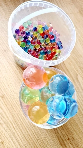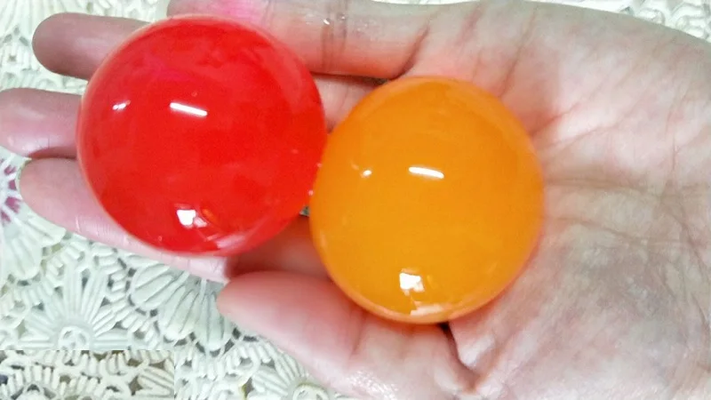 Товар соответствует описанию. Через несколько часов в воде напоминают о большом размере малины. Выше 24 ч в воде они делают шары. Моему ребенку очень нравится.