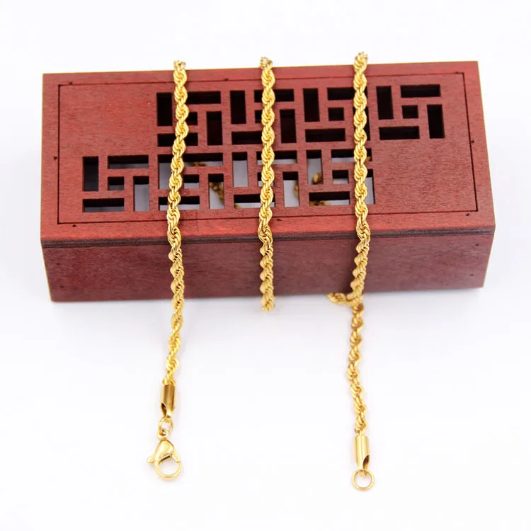 Низкая цена 3 мм 316L нержавеющая сталь позолоченная крученая цепь ожерелье для мужчин и женщин модный подарок ювелирные изделия Прямая поставка