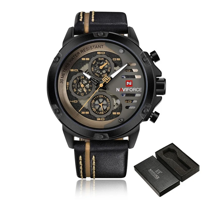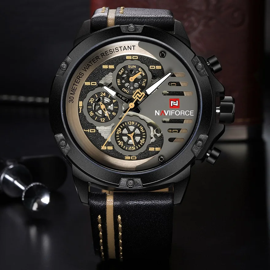 Naviforce Cronos выглядят так, как и должны выглядеть настоящие мужские наручные часы: массивными, прочными и брутальными. Сочетание классического и спортивного дизайна смотрится эффектно и подойдет как к деловому стилю, так и к повседневному.