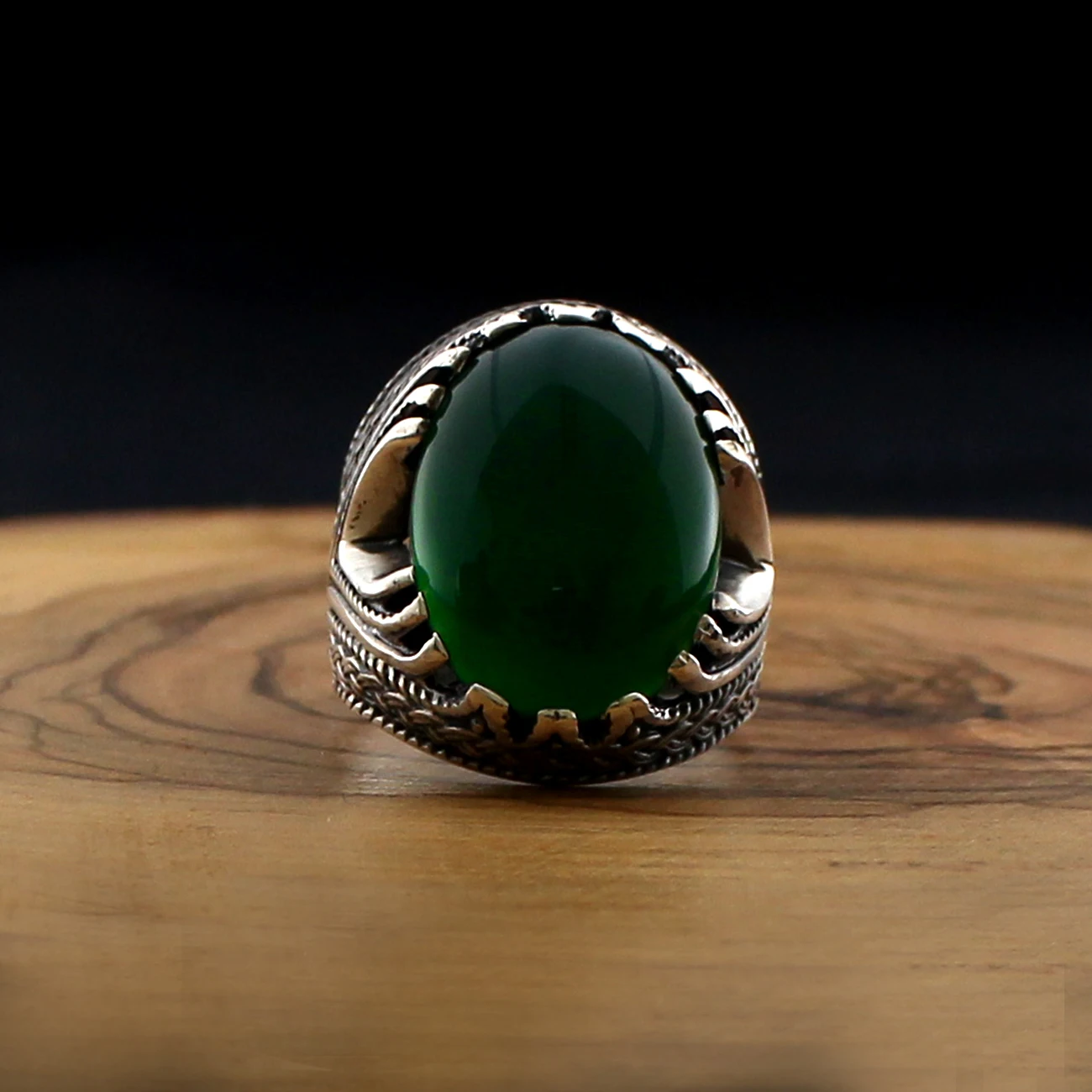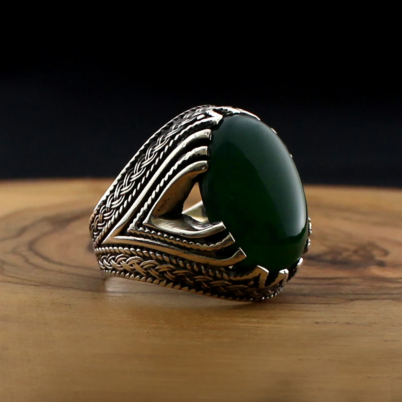 Кольцо из чистого серебра 925 пробы с натуральным камнем для мужчин...