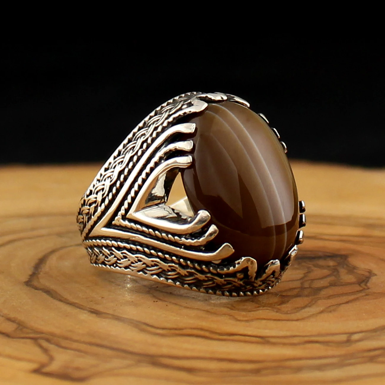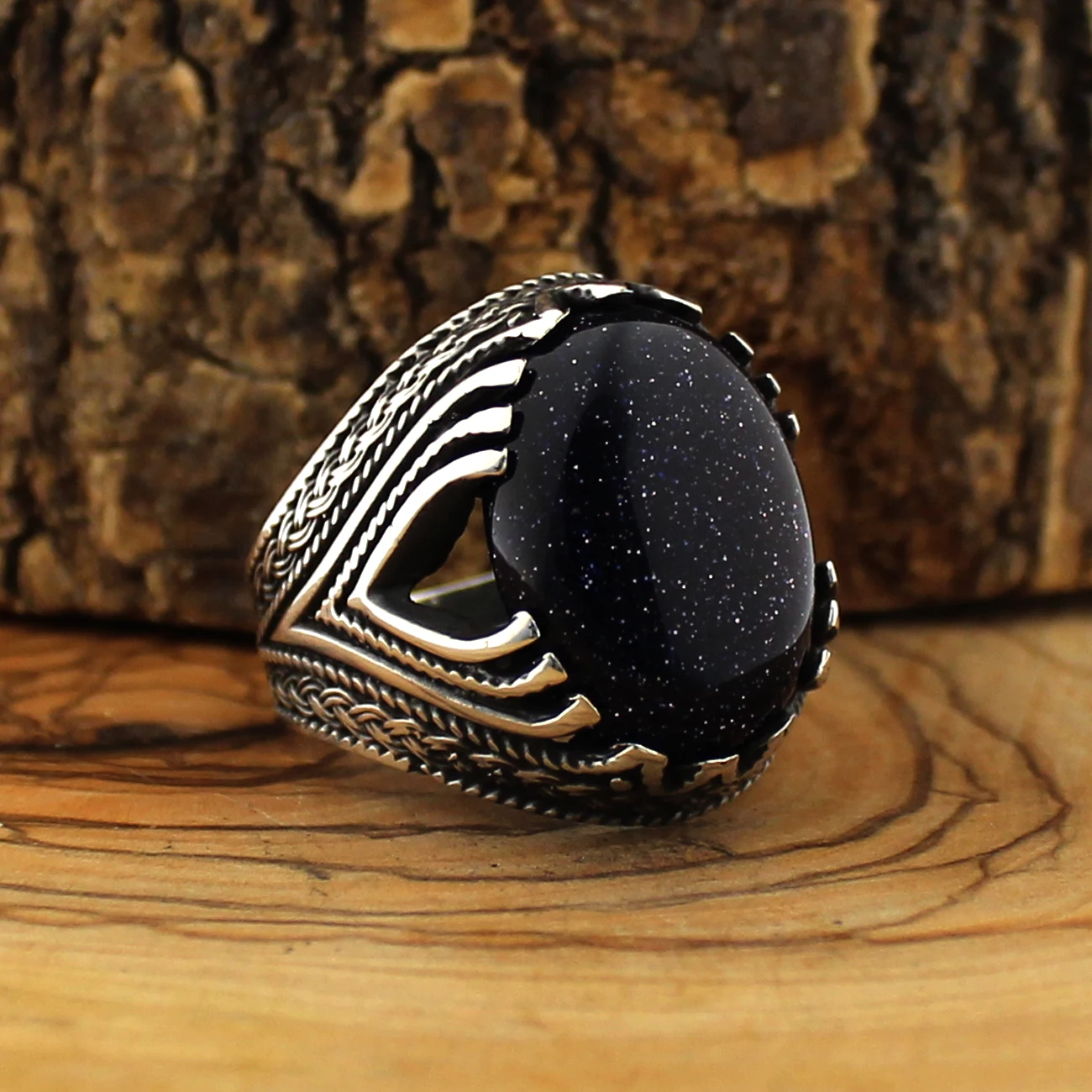 Мужское кольцо из серебра 925 пробы с натуральным камнем