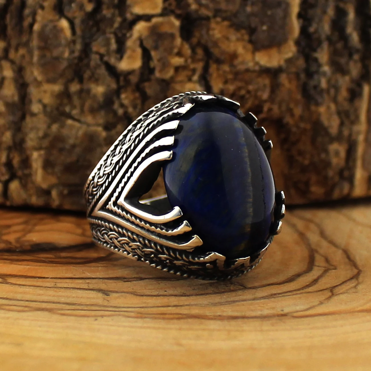 Мужское кольцо из серебра 925 пробы, с натуральным тигровым глазом