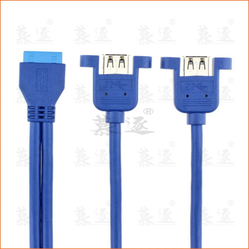 Синий 0,5 м USB 3,0 материнская плата 20pin к USB3.0 два порта гнездовой разъем кабель Шнур 50 см с винтовым креплением Тип 20 см 50 см