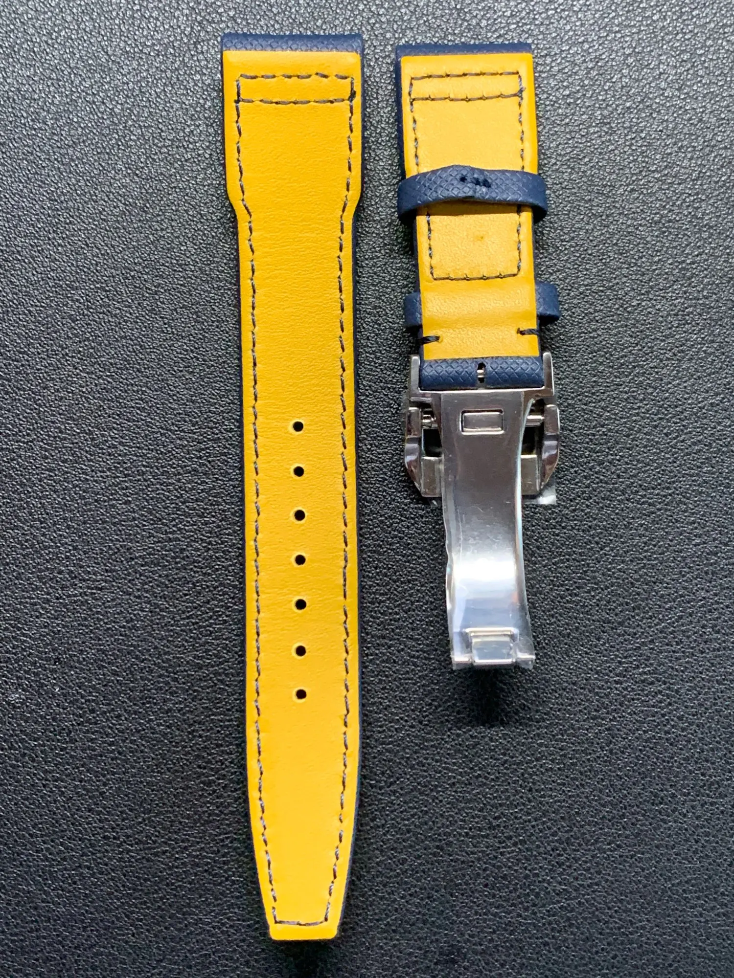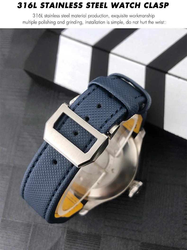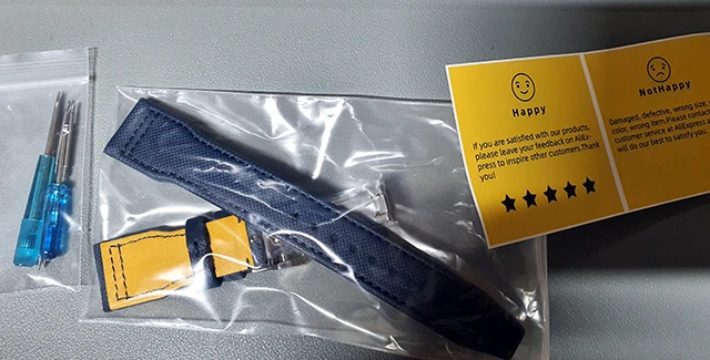 Жесткий, но думаю, что он будет легок в использовании. Небольшая погрешность на ремешке, может быть из-за доставки или проблем с контролем качества, небольшая проблема. Застежка на ощупь прочная и прочная. Красивый синий цвет с желтой подложкой.