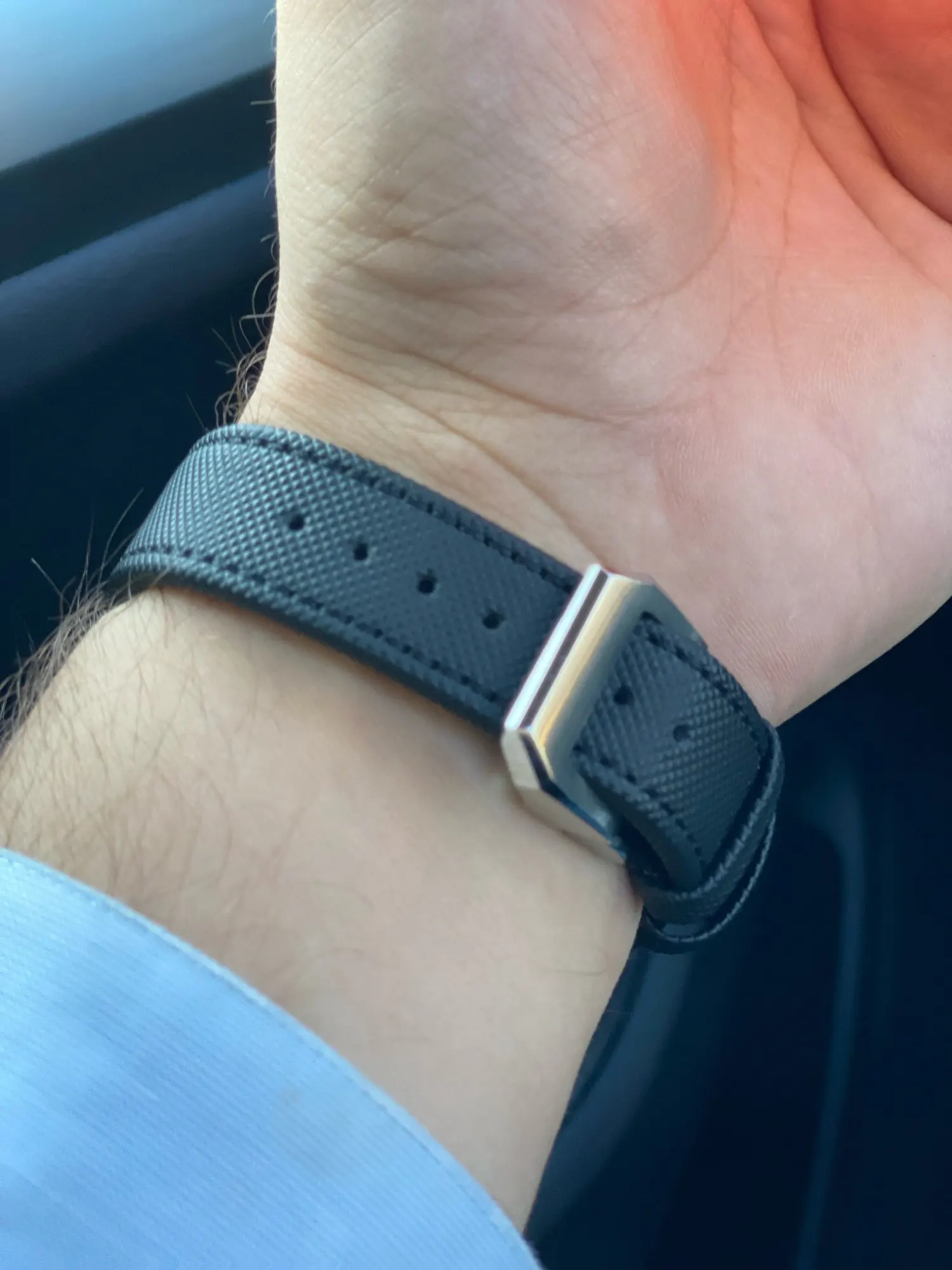Быстрая доставка и качественный материал. Однако боковой ремешок на застежке слишком короткий, поэтому застежка не закрывается в центре на моем запястье.