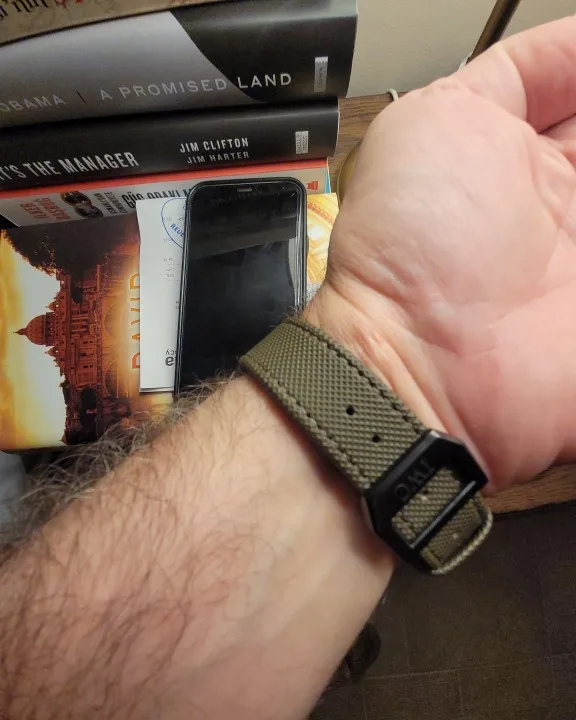 Ремешок и пряжка очень высокого качества. Я очень доволен этим. Цвет не такой зеленый, как на фото. Цвет очень темный и выглядит почти черным, что стало сюрпризом. Я бы хотел, чтобы он был таким же зеленым, как показано на фотографиях.