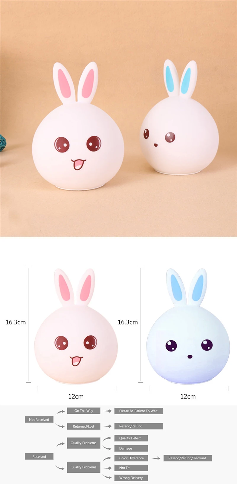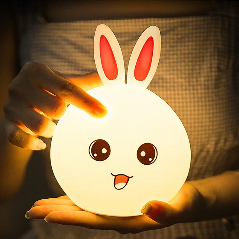 Dozzlor мультяшный кролик, светодиодный Ночной светильник с дистанционным сенсорным датчиком, цветной USB силиконовый прикроватный светильник для детей и малышей