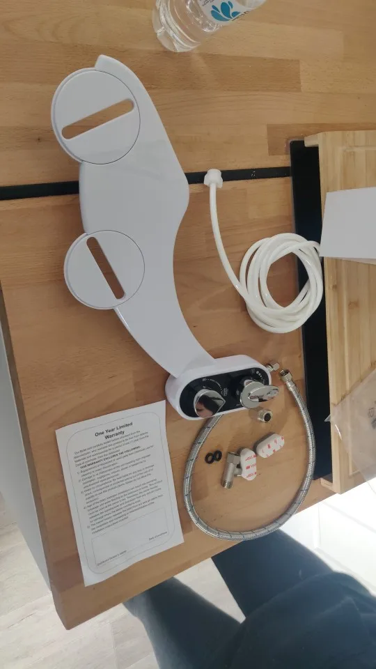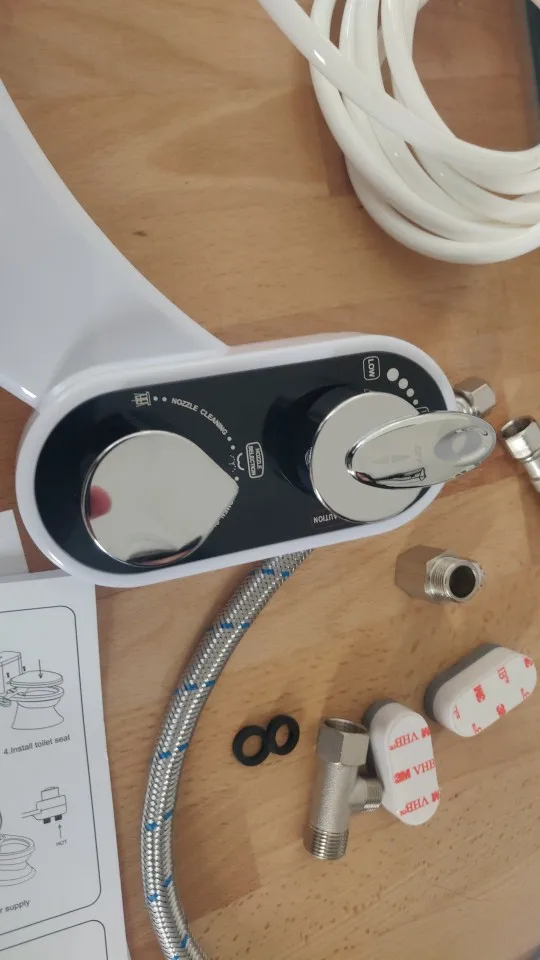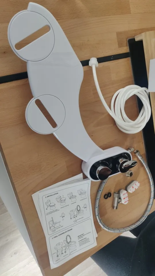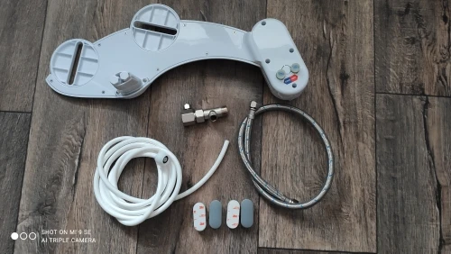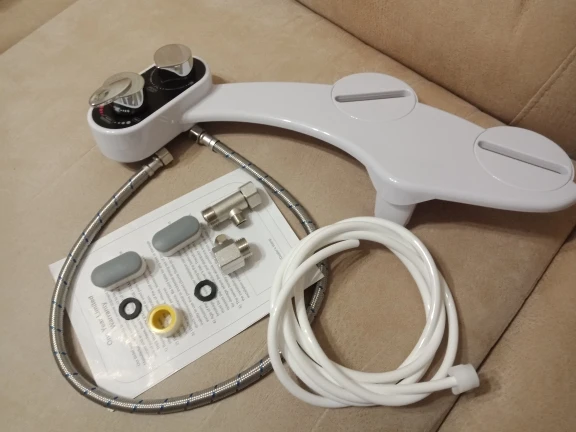Продавец положил по моей просьбе 2 ПВХ трубки и два металлических соединения к ним. По установке: Ободок не пилил, поставил 4 опорные резинки из комплекта. Смотрится конечно хуже, чем если выпилить в ободке отверстия под устройство, так как теперь есть расстояние между унитазом и ободком, но мне показалось, что стало удобнее по высоте, оставил так. Подключился к раковине, работает просто супер. Бьёт точно в цель Напор мощный Качество пластика, смесителя, переключателя на высочайшем уровне. Пожалел только об одном - что не взял раньше Рекомендую и продавца и товар.