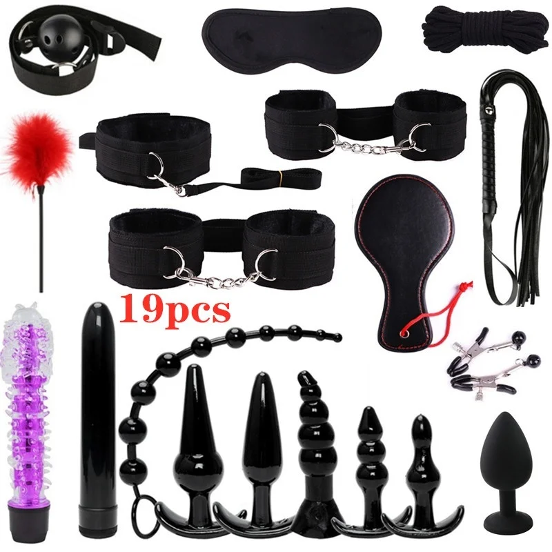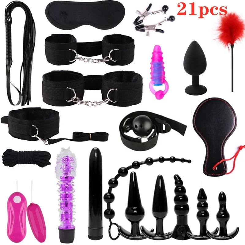 Наручники, 24 шт., бандаж, сексуальные эротические игрушки для взрослых, игры, плюшевые наручники, вибратор, зажимы, Анальная пробка, набор инструментов для БДСМ