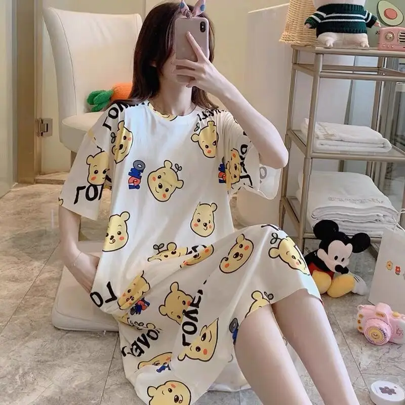 Женская хлопковая ночная рубашка Disney, летняя Пижама, платье, мил...