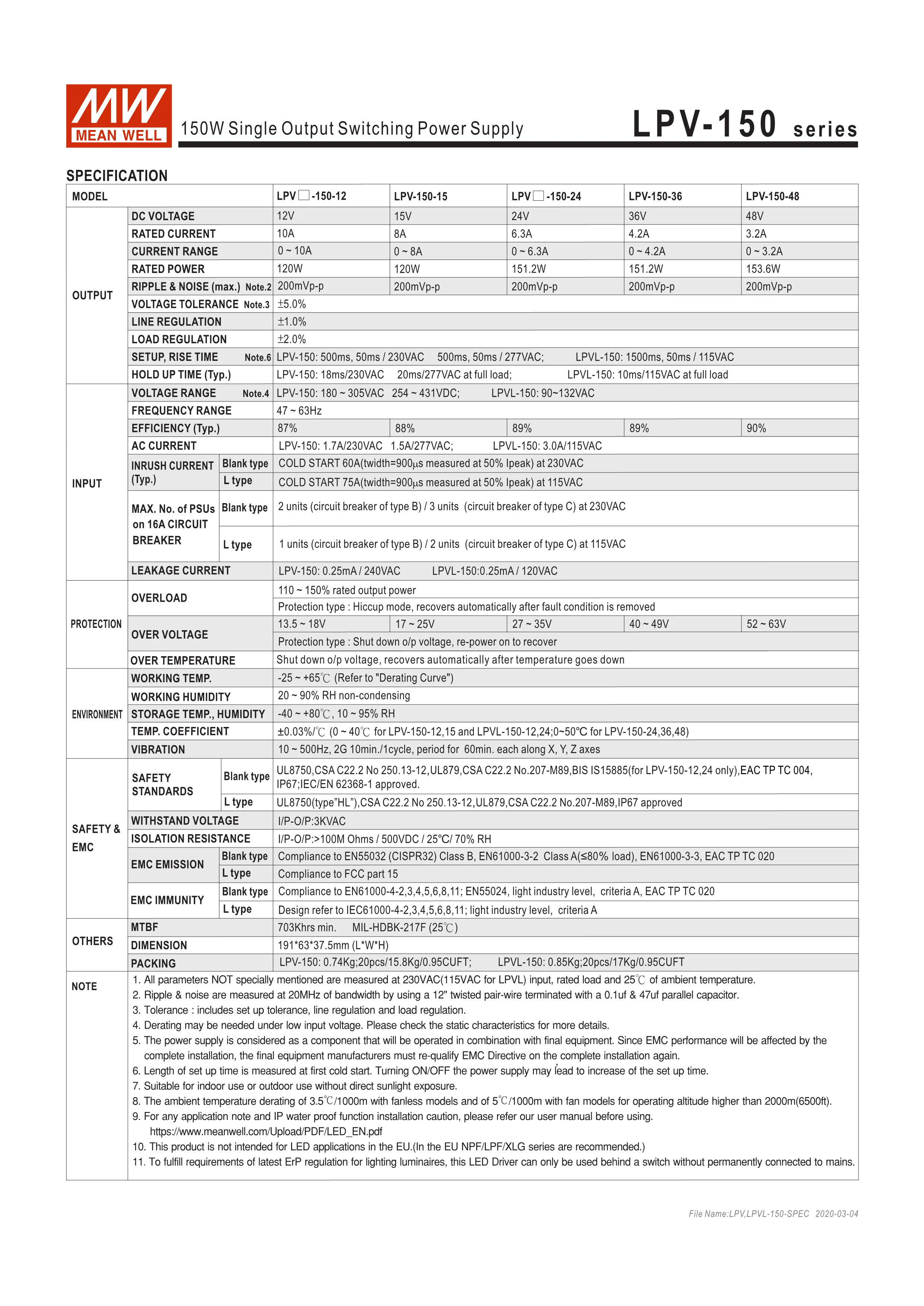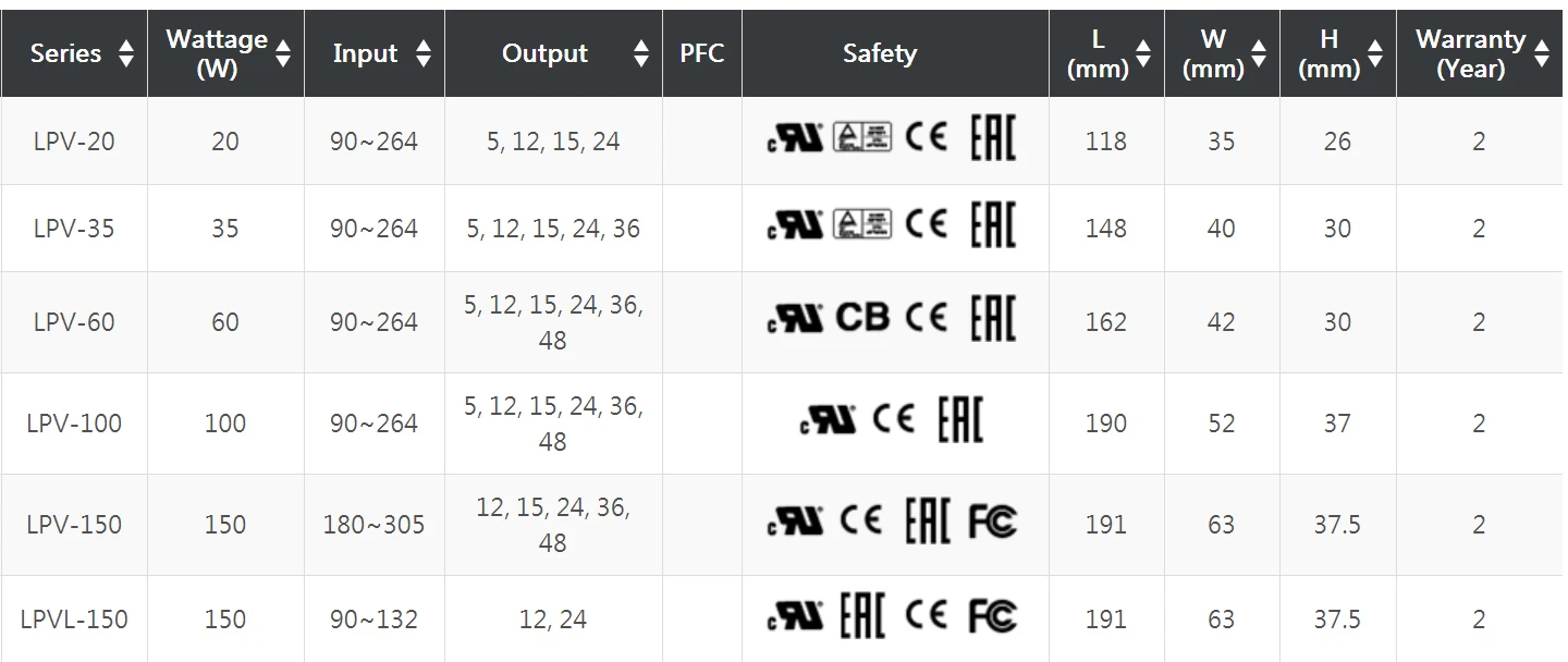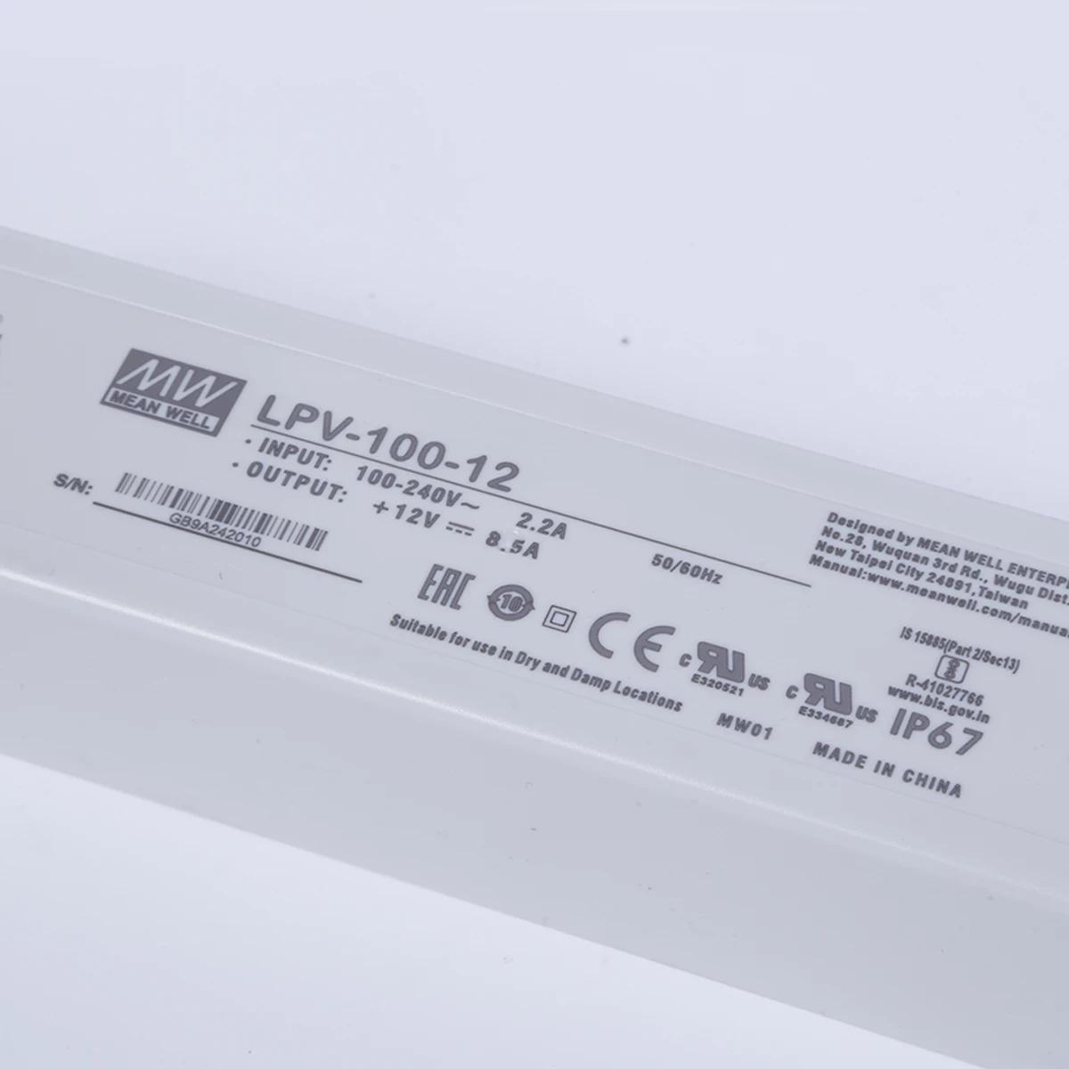 Водонепроницаемый светодиодный драйвер LPV-203560100 Вт, 90-264 В переменного тока в постоянный ток, источник питания 51215243648 В, Meanwell lpv10024, постоянное напряжение