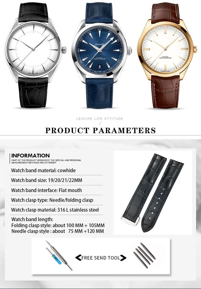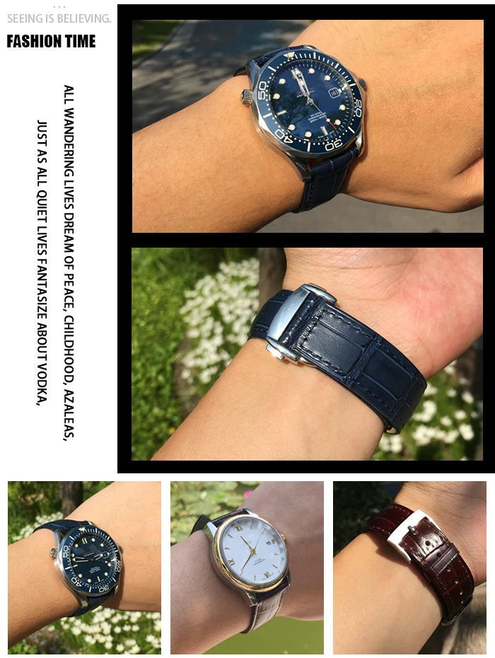 Кожаный ремешок для часов, черный браслет для часов Omega Seamaster...