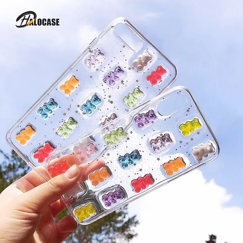 Милый 3D стерео блестящий чехол для телефона iPhone 11 11Pro Max Gummy Bear, чехол ярких цветов для iPhone X 6 6S 7 8 Plus XS Max XR